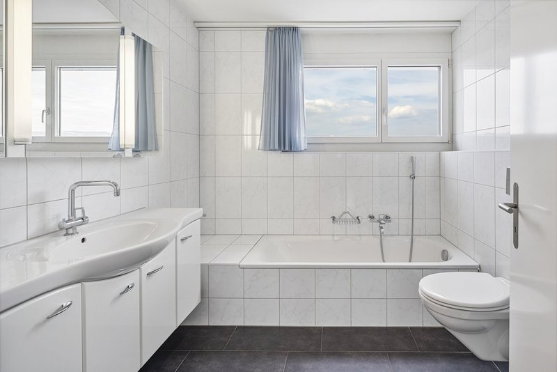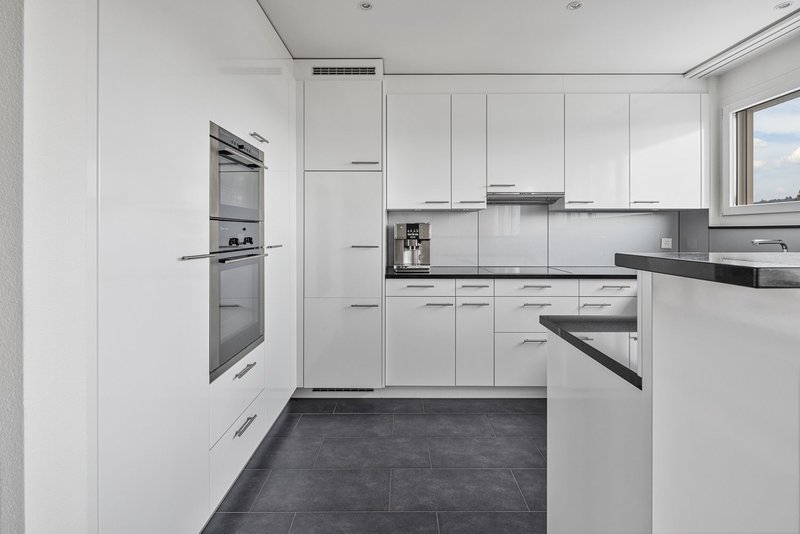 Die offene Küche ist grosszügig gestaltet und hochwertig ausgestattet. Steamer, Backofen und viel Arbeitsfläche laden zum Kochen und Beisammensein ein. Drei helle Zimmer mit idealer Grösse bieten Platz für Familie, Gäste oder ein Büro unter dem eigenen Dach. Die Nasszelle überzeugt mit Badewanne, Dusche, WC und einem Fenster für Frischluft. Zudem könnten Sie eine zweite Nasszelle mit wenig Aufwand realisiert werden, Anschlüsse sind bereits vorhanden. Aktuell ist dort der Hauswirtschaftsraum.
