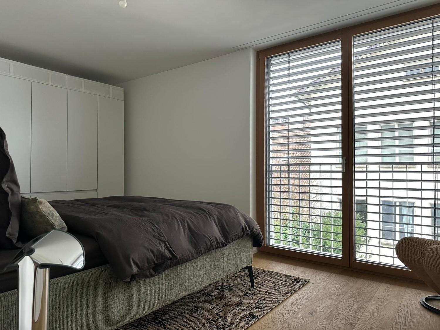 • Bright Bedroom: Spacious and airy, finished with elegant wooden flooring and large windows.