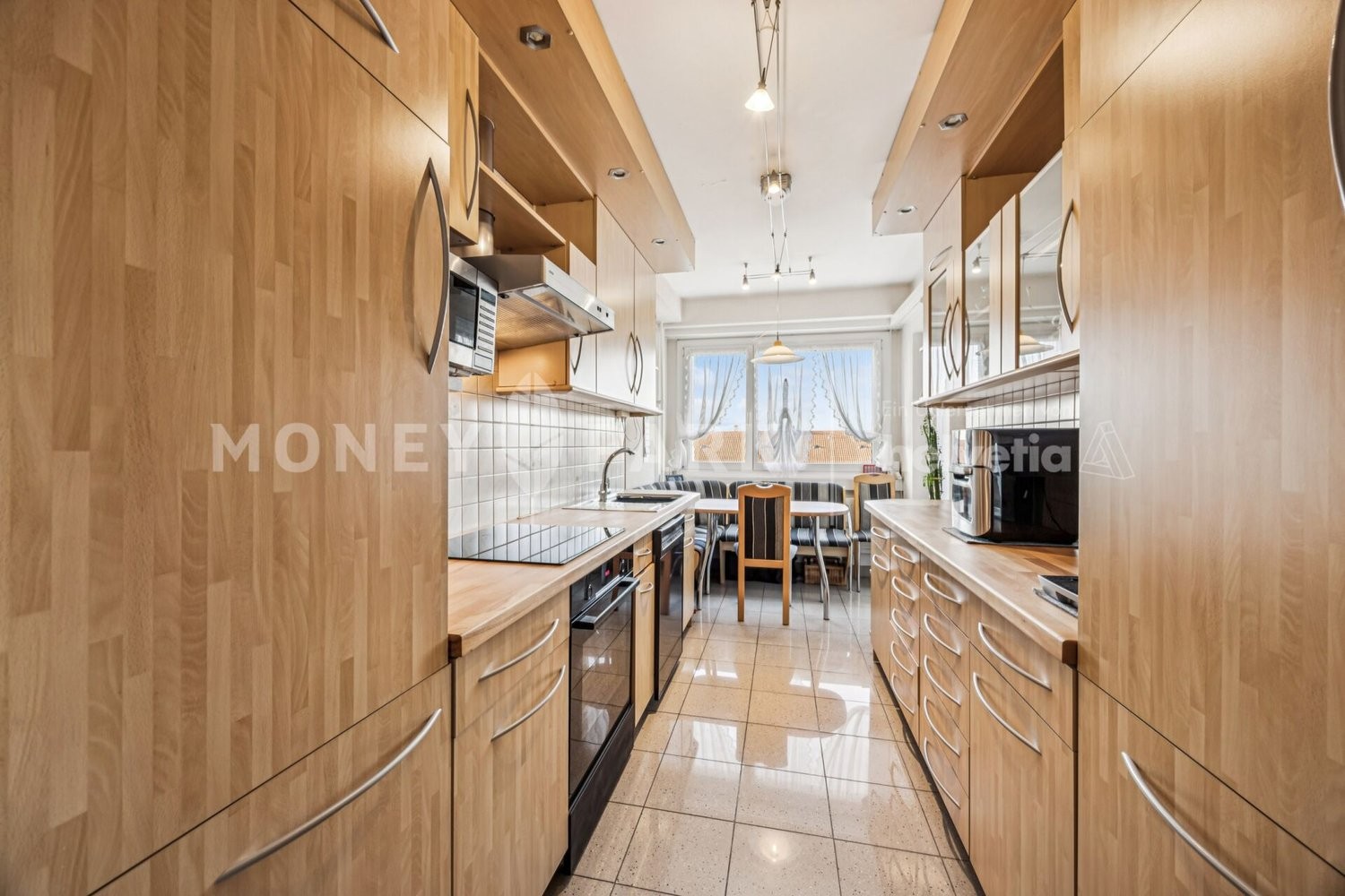 Die praktisch gestaltete Küche mit ihrer hochwertigen Massivholz-Arbeitsplatte bietet viel Platz für Ihre Kochkünste. Am Fenster befindet sich ein gemütlicher Essbereich mit einer eingebauten Sitzgarnitur. Direkt angrenzend liegt das grosszügige Wohnzimmer, das durch seine Helligkeit und Grösse vielfältige Einrichtungsmöglichkeiten bietet. Sowohl vom Wohnzimmer als auch von der Küche, gelangen Sie auf den verlasten Balkon in Richtung Westen. Ein herrlicher Platz, um das ganze Jahr über die Abendsonne zu geniessen.
