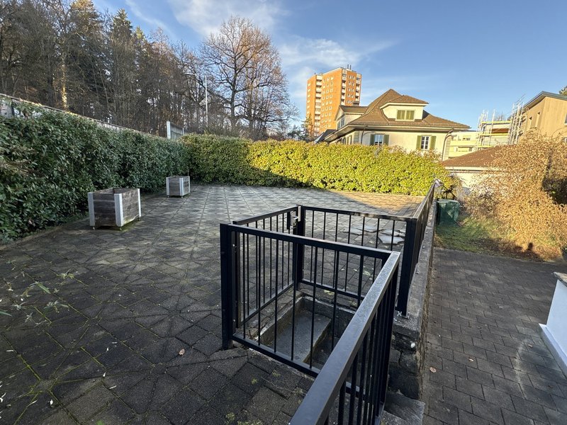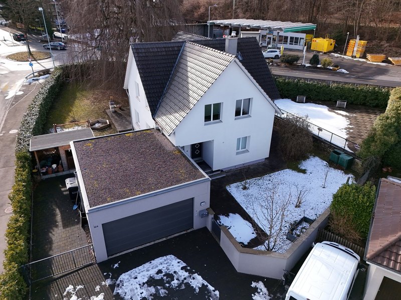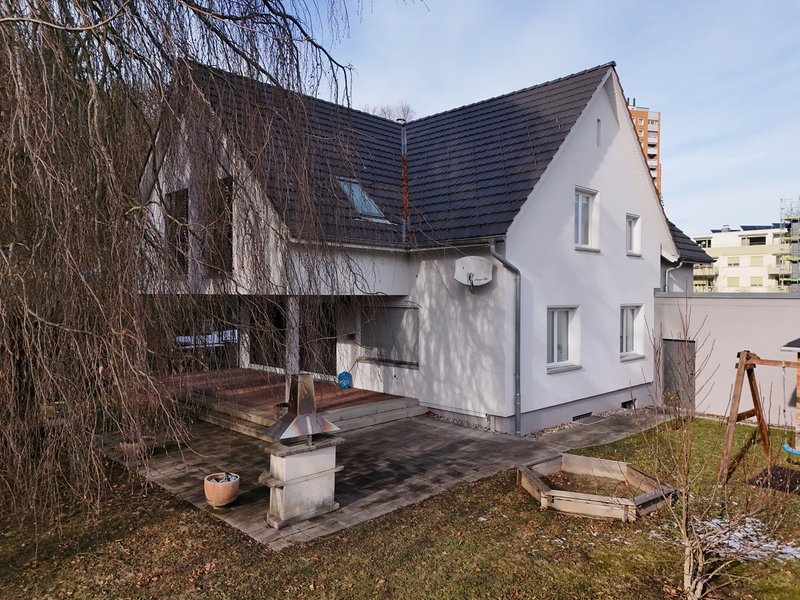 Dieses Einfamilienhaus an einer Verkehrsachse überzeugt durch grosszügige Räume und ein aussergewöhnliches Aussenambiente. Der grosse Garten mit schöner Veranda und einer imposanten Buche bietet an heissen Sommertagen angenehmen Schatten und schafft eine besondere Wohlfühlatmosphäre.