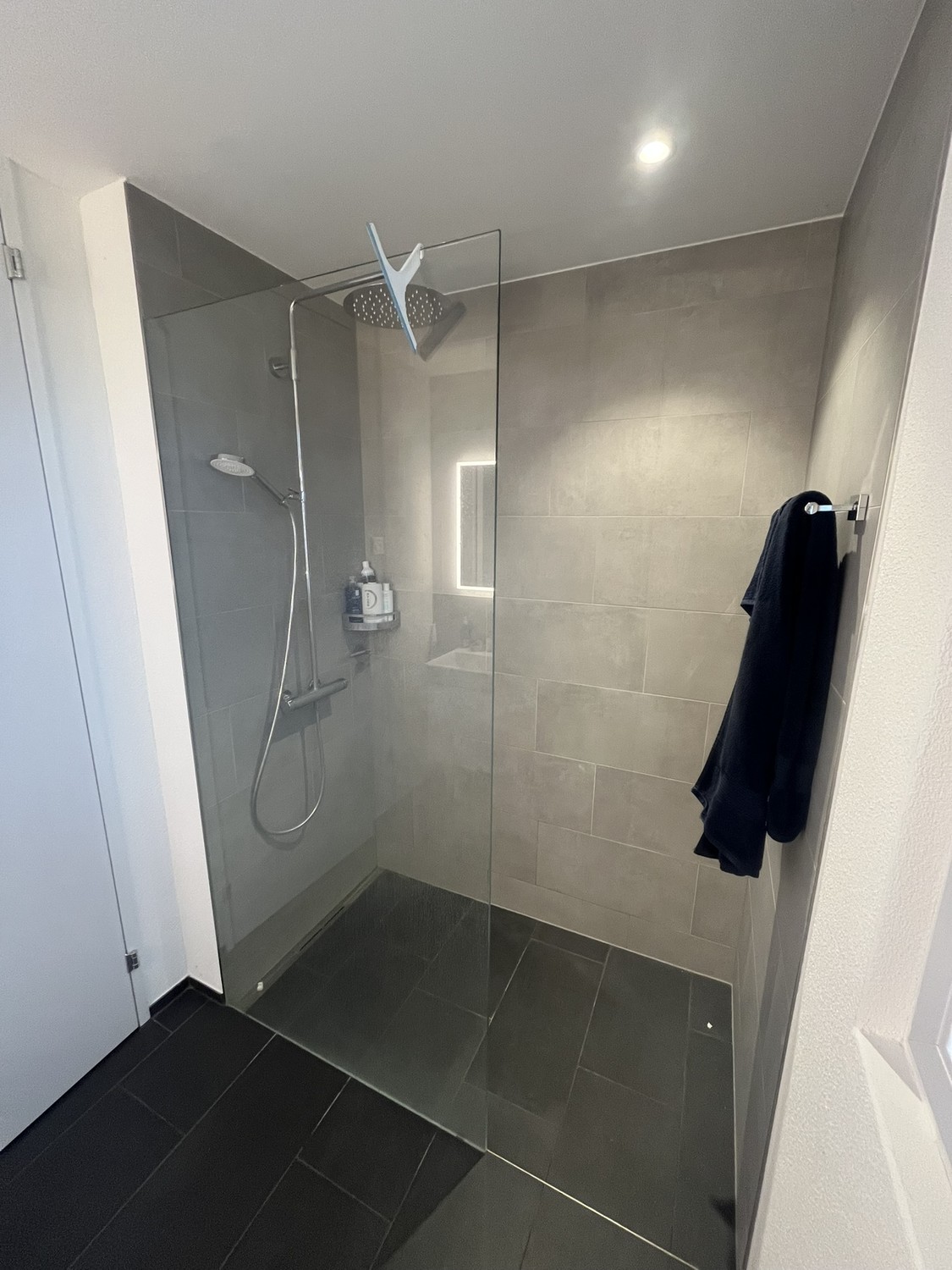 Die Neubauwohnung hat zwei Schlafzimmer, zwei Badezimmer (eines mit Waschmaschine und Tumbler), einen grosszügigen Wohn und Essbereich. die ganze Wohnung ist durch die südliche Hanglange sehr hell. Die Küche ist mit Induktionskochfeld ausgestattet.