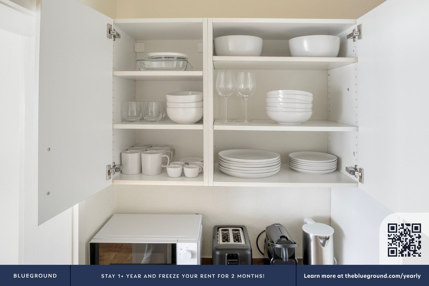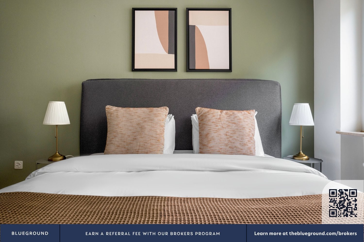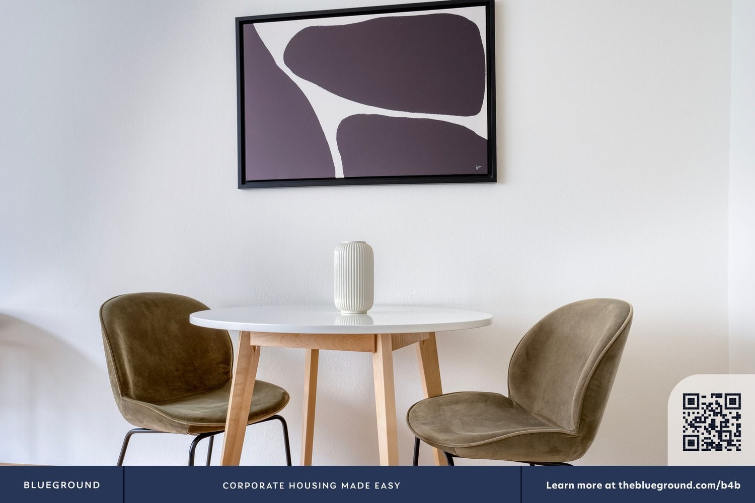 Für die Ausstattung des Gebäudes können zusätzliche Kosten anfallen.Dieses Blueground Wohnung bietet flexible Mietoptionen, sodass Sie es für drei Monate, ein Jahr oder länger buchen können.Wir sind sehr stolz darauf, dass alle gezeigten Fotos in unseren eigenen Einheiten mit unserer tatsächlichen Einrichtung aufgenommen wurden. Das heißt, wir aktualisieren regelmäßig unsere Dekoration und Möbelanordnung, die von dem abweichen kann, was abgebildet ist.