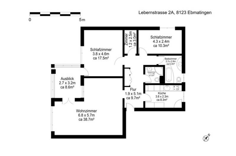 Lage und Umgebung: Die Wohnung liegt in einer ruhigen und sonnigen Gegend von Maur. Die Bushaltestelle Ebmatingen Dorf ist nur 7 Gehminuten entfernt. Busfahrt nach Zürich Klusplatz dauert lediglich 15 Minuten. Migros und Schule Leeacher sind innert 10 Minuten zu Fuss erreichbar.
