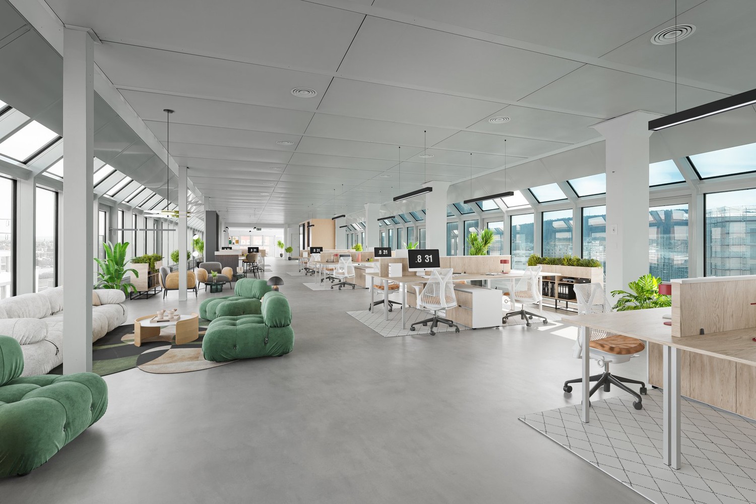 «Office Zone» Ansprechende, helle und gut ausgestattete Büroflächen in einem dynamischen Umfeld. «Network Zone» Raum, um sich auszutauschen. Beispielsweise in der Lobby, an der Café Bar oder im grosszügigen Aussenbereich. «Service Zone» Post- und Paketdienst, Kinderbetreuung, Restaurant, Dusche und Garderoben sowie Parkplätze mit E-Ladestationen runden das Angebot ab.
