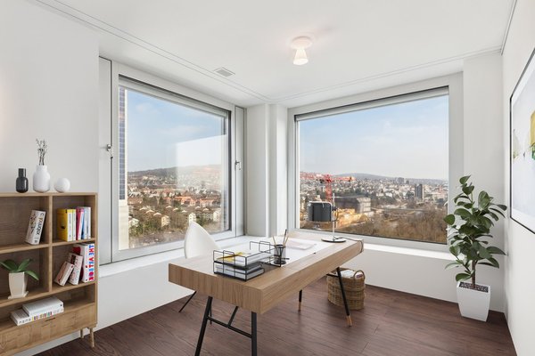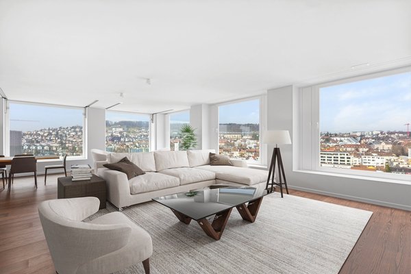 Diese traumhafte Wohnung im 15. Obergeschoss des Löwenbräu Black Towers bietet urbanen Luxus, durchdachte Architektur und eine spektakuläre Aussicht über Zürich.