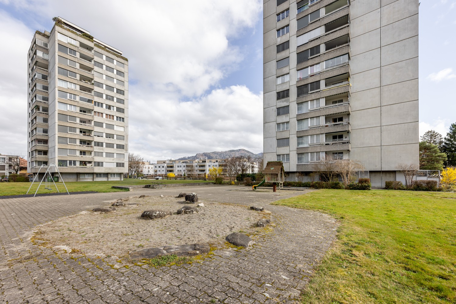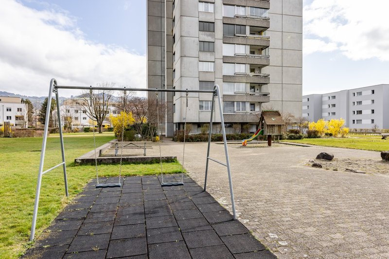 Die Liegenschaft verfügt über eine gut organisierte Infrastruktur für die Bewohnerinnen und Bewohner. Insgesamt vier gemeinschaftliche Waschküchen mit Waschmaschine und Tumbler stehen zur Verfügung. Zusätzlich gibt es diverse Velo- und Abstellplätze. Die gepflegte Aussenanlage mit Spielplatz und grosszügiger Rasenfläche bietet Raum zum Verweilen und ist besonders für Familien mit Kindern attraktiv.