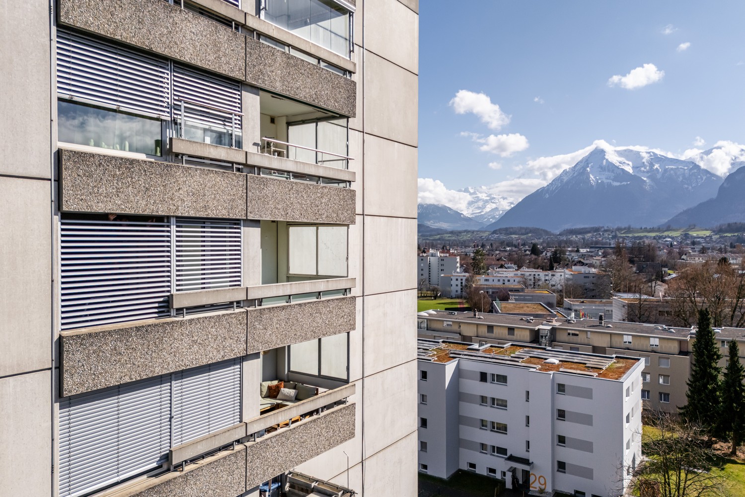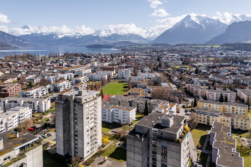 Die interessante 3½ Zimmer-Wohnungmit Lift befindet sich an ruhiger und dennoch zentraler Lage am Meisenweg 31 in Thun im beliebten Wohnquartier Strättligen. Die Umgebung zeichnet sich durch ihre angenehme Wohnqualität sowie die Nähe zu zahlreichen Naherholungsgebieten aus. Der Thunersee, weitläufige Spazier- und Velowege sowie verschiedene Grünflächen sind in kurzer Zeit erreichbar und bieten ideale Möglichkeiten für Freizeit und Erholung. Einkaufsmöglichkeiten für den täglichen Bedarf, Schulen, medizinische Einrichtungen sowie diverse Dienstleistungsangebote befinden sich in der näheren Umgebung. Auch verkehrstechnisch ist die Lage sehr gut erschlossen: Öffentliche Verkehrsmittel sind in wenigen Gehminuten erreichbar und verbinden das Quartier bequem mit dem Stadtzentrum von Thun sowie mit den umliegenden Gemeinden.