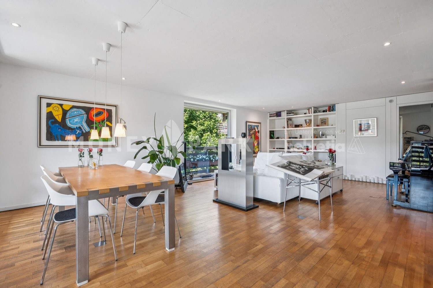 Drei direkt erreichbare Tiefgaragenplätze (je +CHF 45'000.-) garantieren Bequemlichkeit und Sicherheit. Die ruhige Lage in einem gepflegten Park mit viel Privatsphäre, kombiniert mit der flexiblen Aufteilung in zwei Wohneinheiten, macht die Immobilie besonders attraktiv.