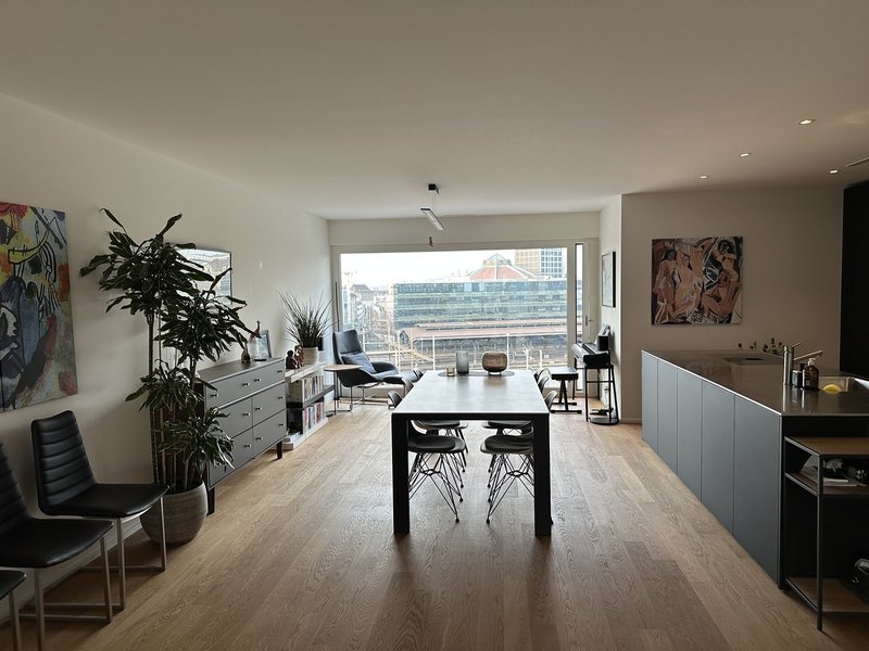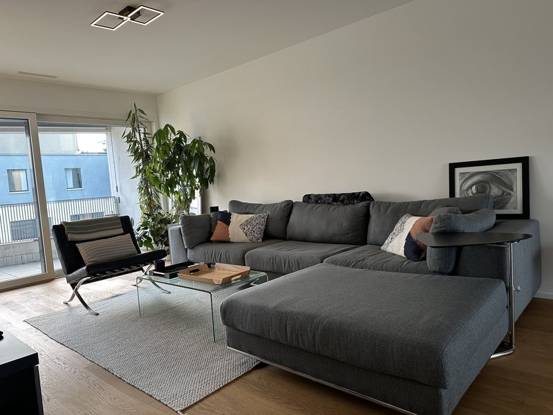This fully furnished 103m2 apartment with 2 bedrooms and 2 bathrooms includes utilities, WiFi, Miele appliances, washer/dryer, and everything you need to walk in and start living - available April 1.