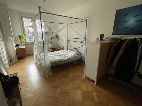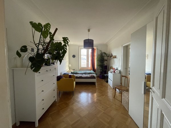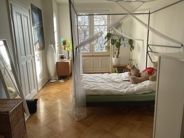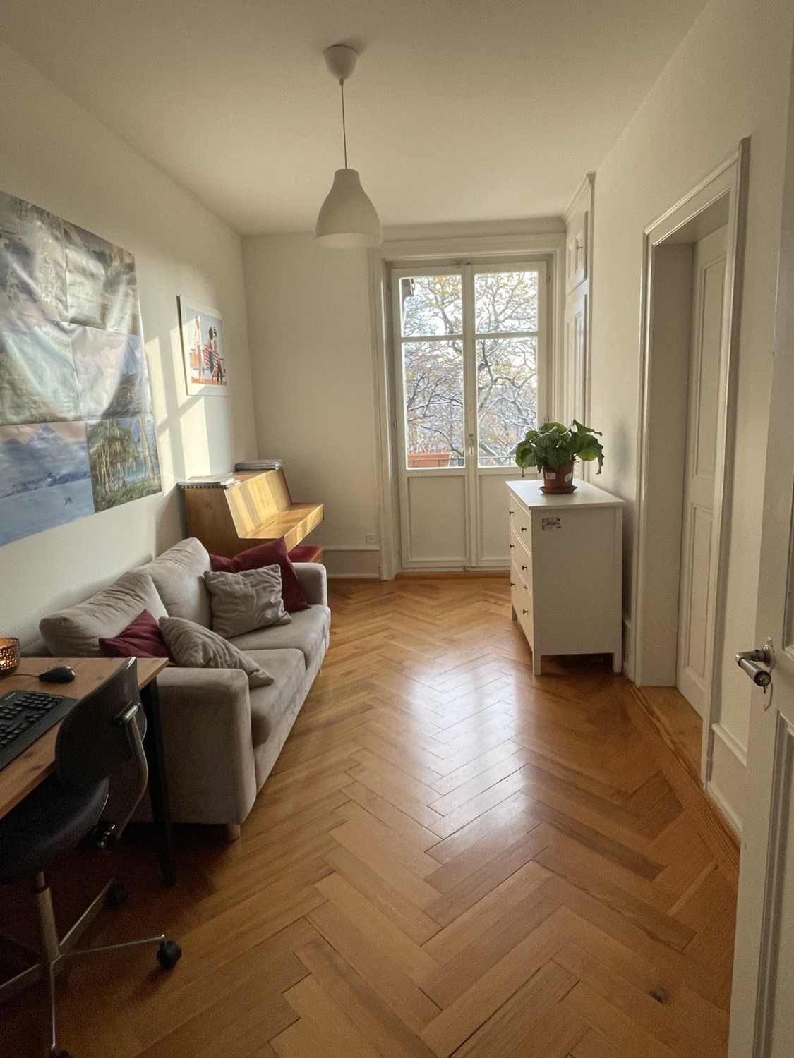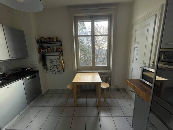 Diese einzigartige Altbauwohnung vereint historischen Charme mit modernem Wohnkomfort. Einerseits bietet sie Ruhe mit Blick ins Grüne in Richtung Florapark und andererseits einen erhöhten Platz zum Beobachten des Individual- und öffentlichen Verkehrs der Monbijoustrasse während des Feierabends.