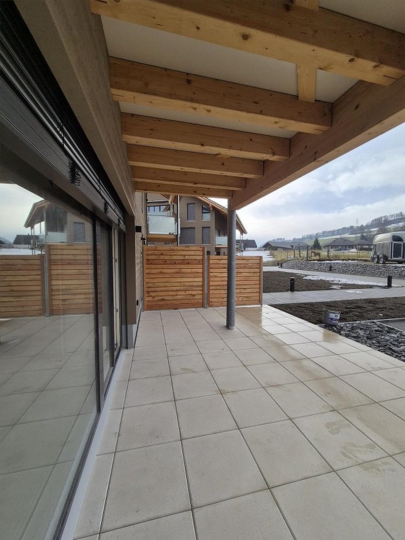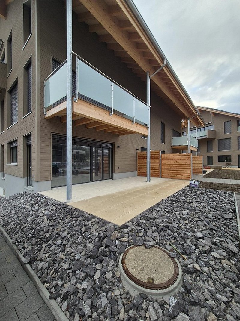 Der Innenausbau erfolgt im Eigentumsstandard und überzeugt durch einen durchdachten Grundriss, helle Wohnräume und zwei moderne Nasszellen. Hochwertige Plattenboden, eine grosszügige Garderobe, Waschmaschine und Tumbler sowie eine moderne grosse Küche mit Kochinsel schaffen Komfort und Stil - ideal für gemeinsames Kochen, gemütliche Momente und geselliges Beisammensein.