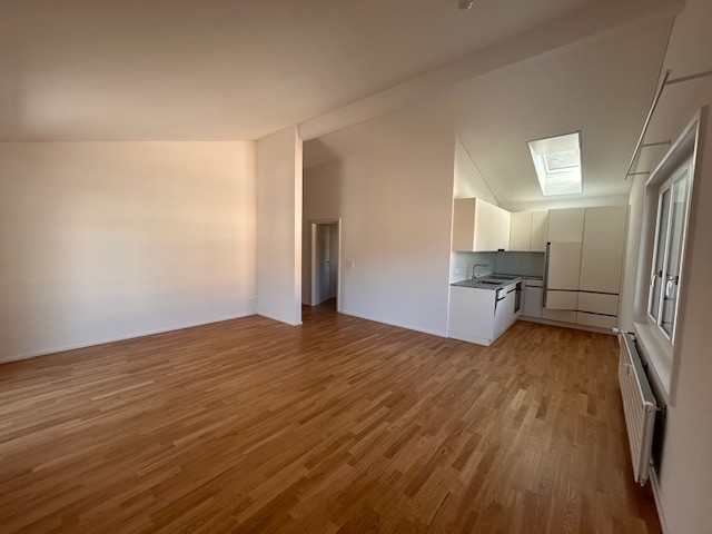 Neu renovierte 3.5-Zimmer Dachwohnung mit Schallschutzfenstern in saniertem Mehrfamilienhaus. Ideal für Singles oder Paare.