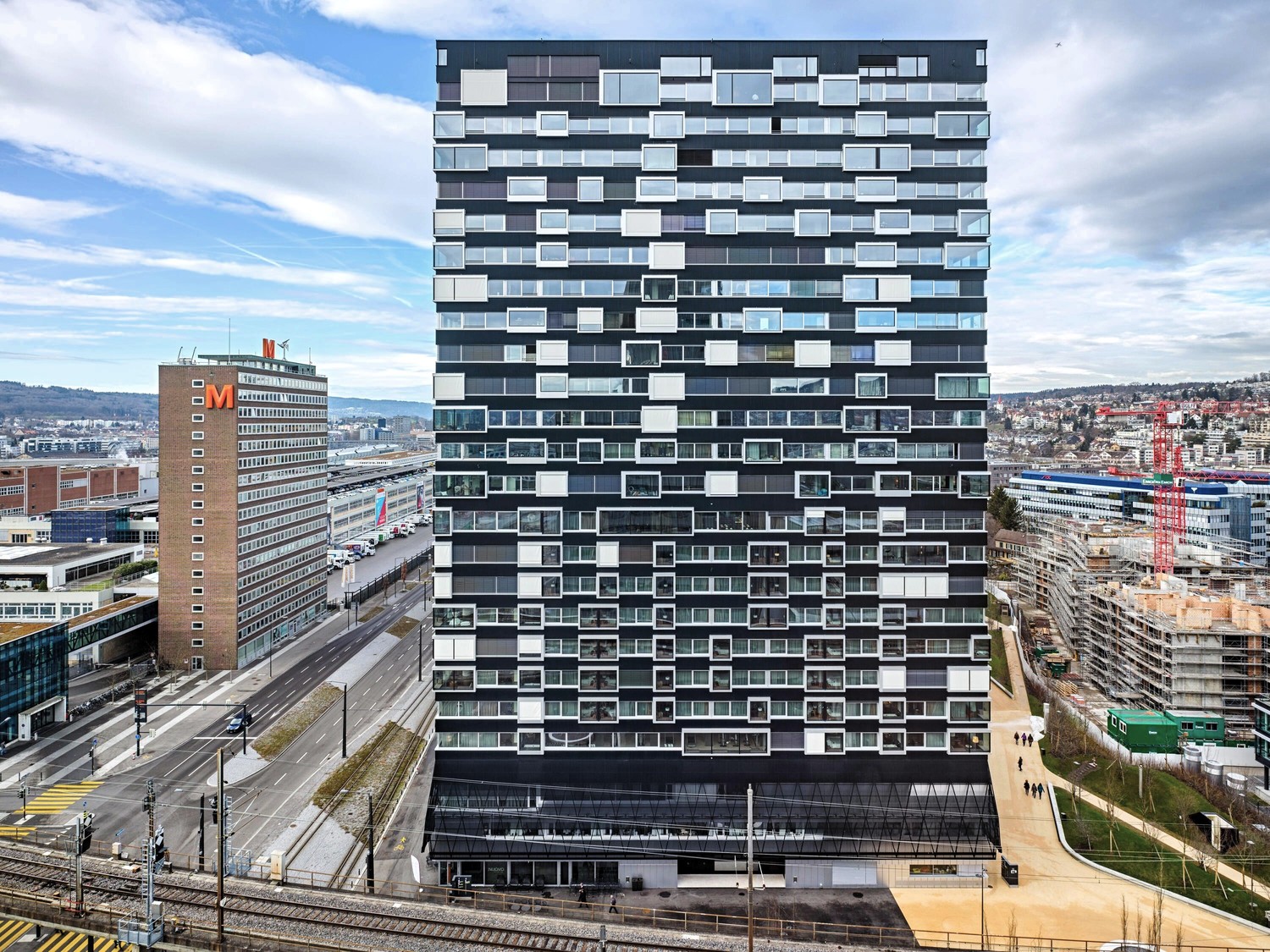 Auch die Lage überzeugt: Das Penthouse befindet sich in einem dynamischen Umfeld in Zürich-West, in direkter Nachbarschaft zu namhaften Institutionen. Im Erdgeschoss befinden sich ein renommiertes Restaurant sowie die Eingangslobby des Sheraton Zürich Hotels. Eine Tiefgarage ist vorhanden und die Tramstation Toni-Areal befindet sich direkt vor der Tür.