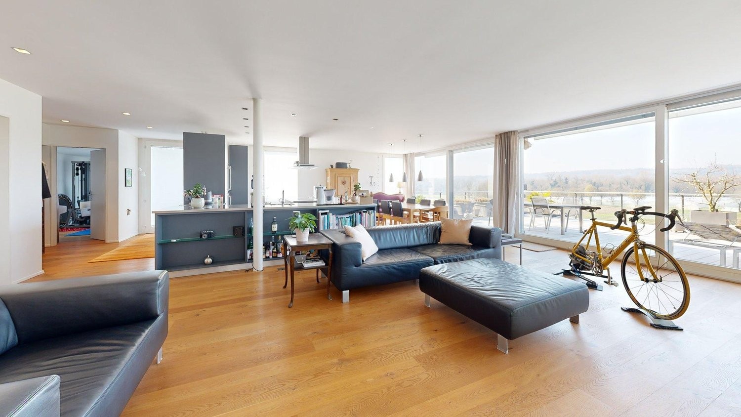 Ihre Gäste empfangen Sie im grosszügigen Wohn- und Esszimmer mit Ausblick auf die unverbaubare Reussebene.