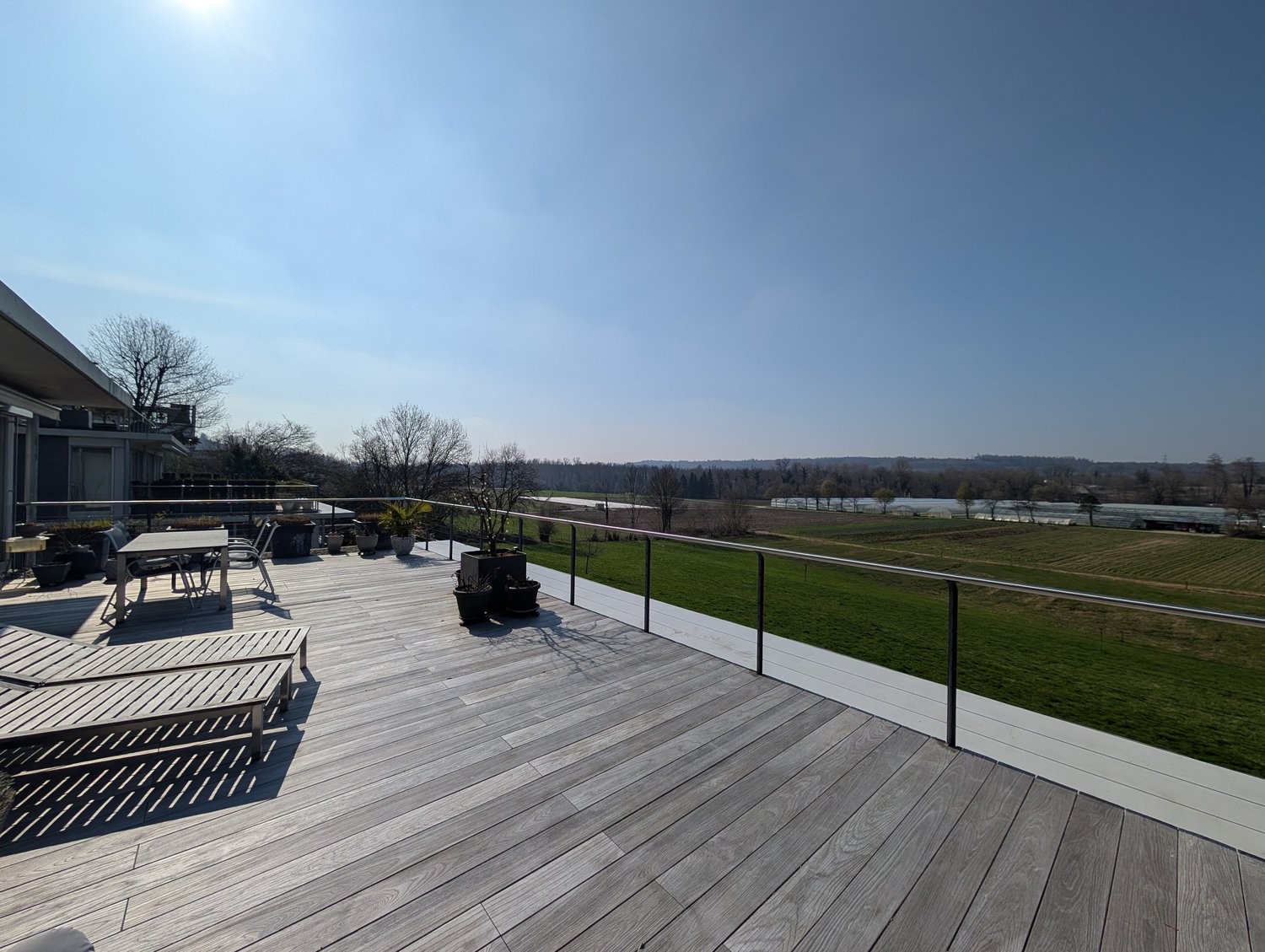 Die Terrasse lädt zum Sonnenbaden sowie zu gemütlichen Stunden zu zweit oder mit Familie und Freunden ein sei es beim Geniessen eines stimmungsvollen Sonnenuntergangs bei einem guten Glas Wein.
