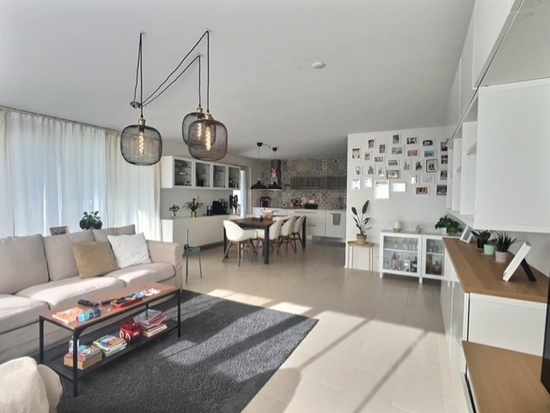 D’une surface habitable d’environ 100 m², l’appartement se compose d’un vaste séjour avec cuisine ouverte, bénéficiant d’une belle luminosité et d’un accès direct au jardin privatif d’environ 80 m².