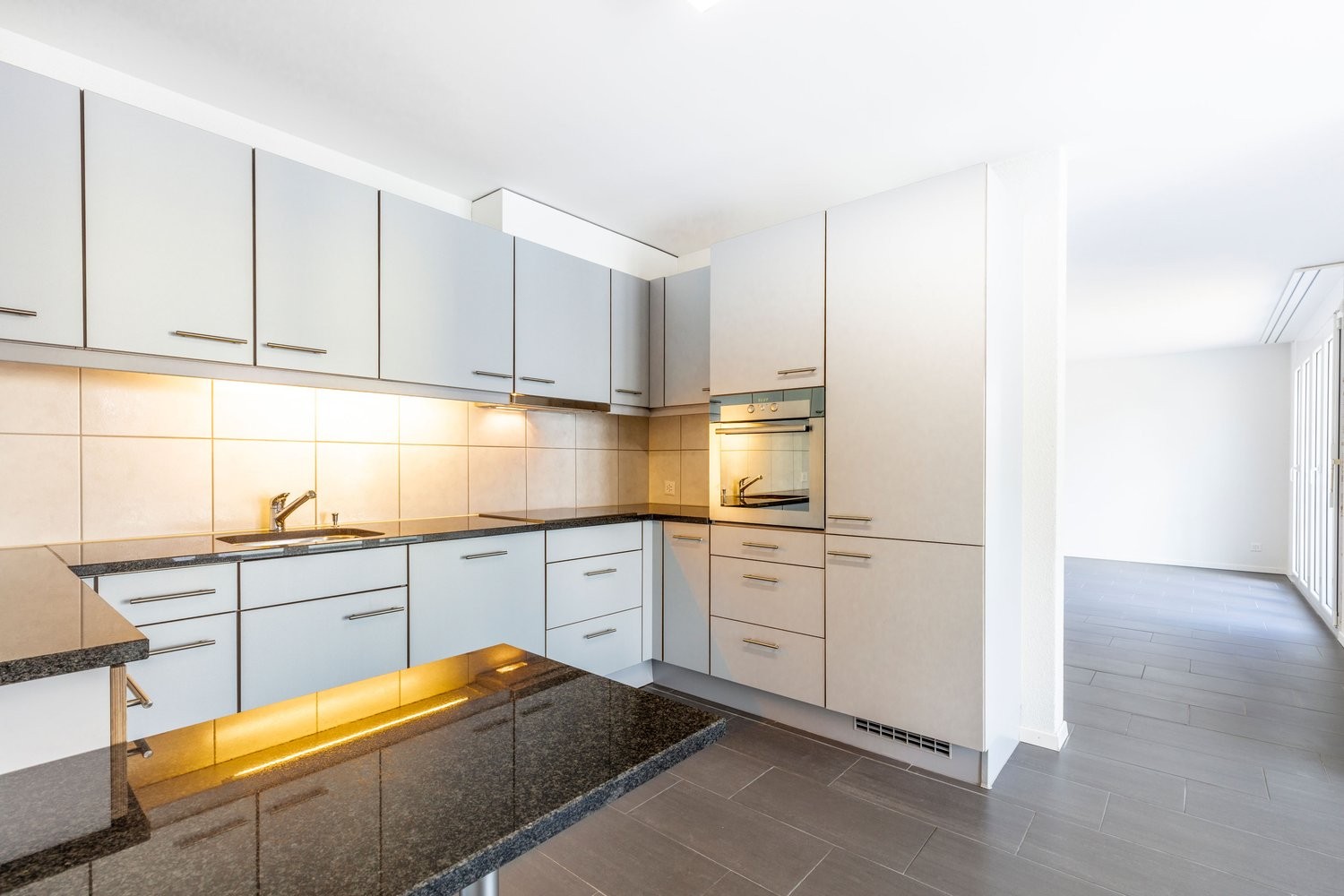 - Moderne Küche mit Geschirrspüler, Glaskeramik, grosses Gefrierfach und Granitabdeckung