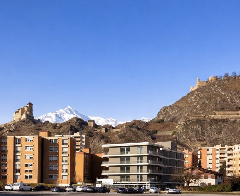 Dans quartier calme à deux pas de la ville et de l'entrée d'autoroute, avec vue extraordinaire sur les châteaux de Valère et Tourbillon