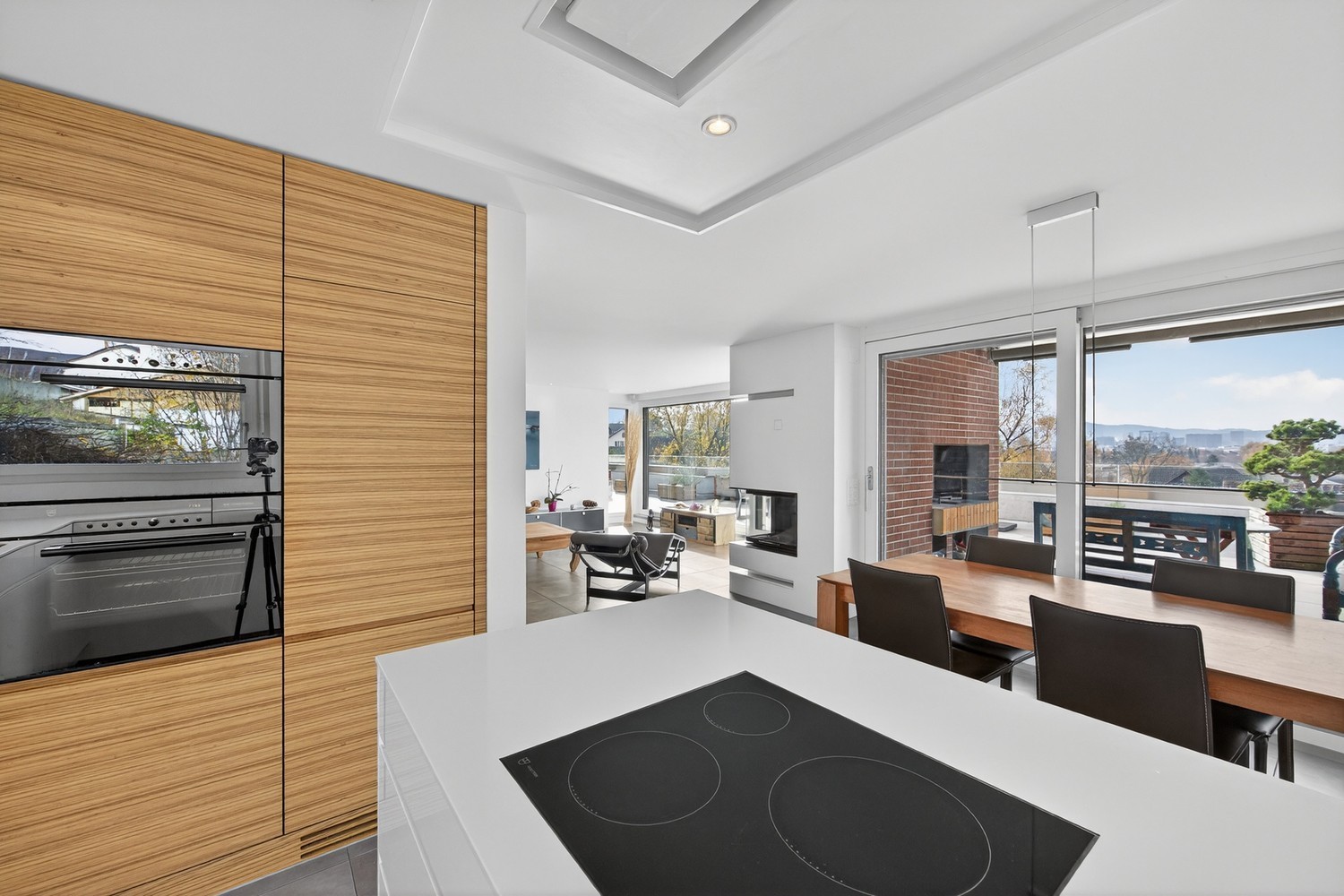 Das Herzstück ist die rund 75 m² grosse Terrasse mit eindrücklicher Weitsicht über Örlikon, Zürich bis zum Üetliberg. Hier geniessen Sie Sonne, Privatsphäre und einen Ausblick, der jeden Tag wie Ferien wirkt. Die Raumaufteilung ist offen und modern, mit grosszügigen Wohnbereichen und einem zeitlosen Ausbaustandard.