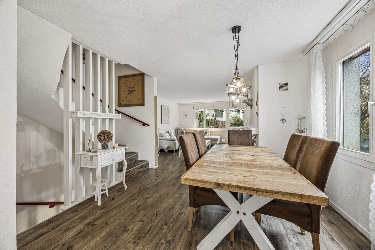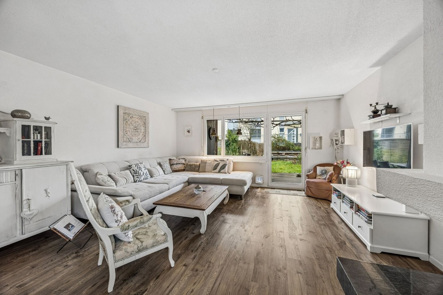 Bereits beim Betreten werden Sie von einem einladenden Eingangsbereich empfangen. Daran schliesst sich der Essbereich mit angrenzender Küche sowie der gemütliche Wohnbereich an, der direkten Zugang zum sonnigen Aussenbereich bietet - ideal für entspannte Stunden im Freien.