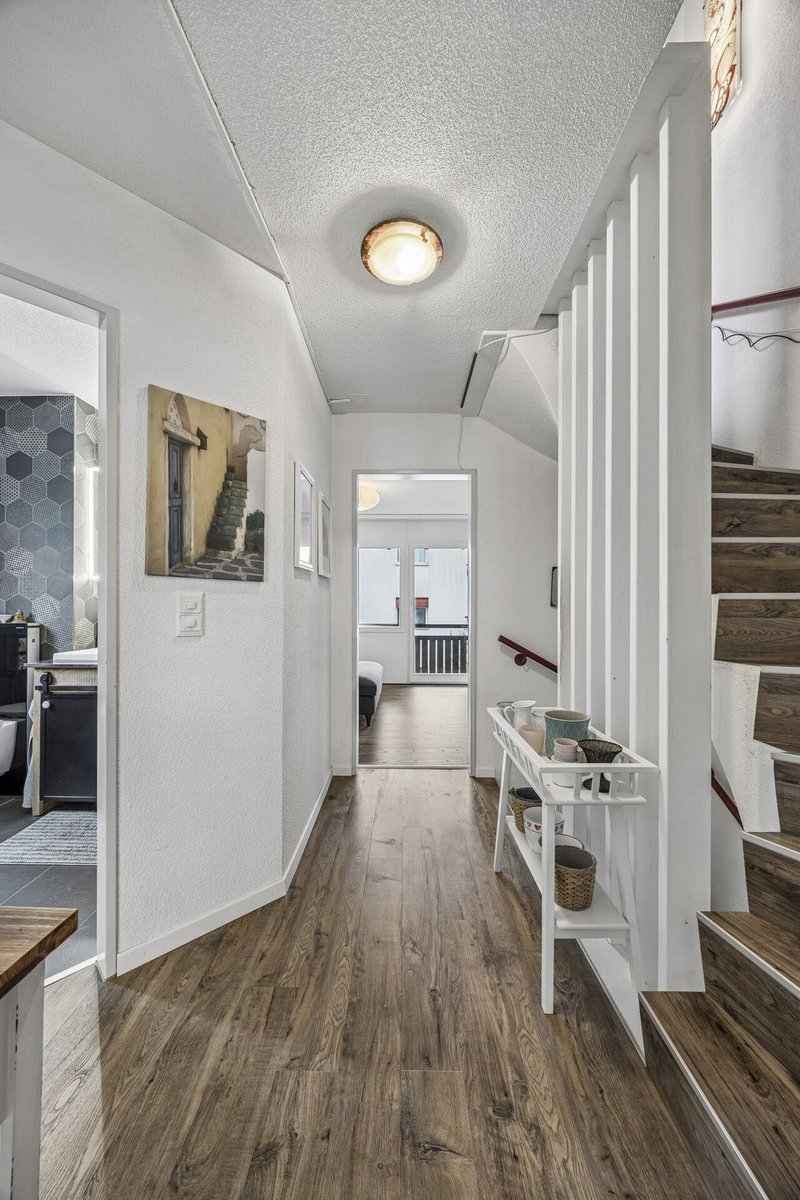 Das zweite Obergeschoss bietet zwei weitere Zimmer, darunter ein besonders grosszügiges und vielseitig nutzbares Zimmer - perfekt geeignet als Atelier, Büro oder zusätzliches Schlafzimmer.