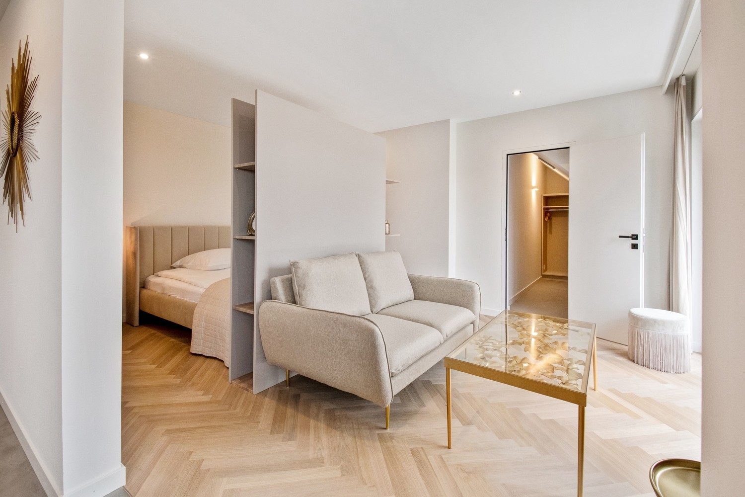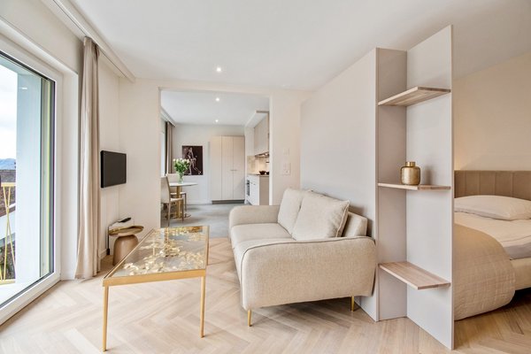 Aktuell frei: Apartment Josephine Baker. Inspiriert von der Ausstrahlung der gleichnamigen Tänzerin zeichnet sich die Gestaltung durch warme Farbnuancen, subtile Eleganz und feine Art-Déco-Elemente aus. Die Möblierung vermittelt klare Linien und stilvolle Materialien.