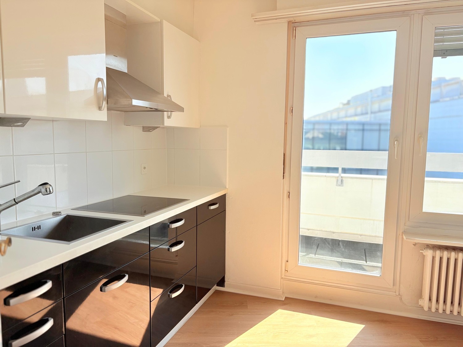 Sehr grosser Balkon, der sich über die gesamte Wohnung erstreckt – ideal zum Entspannen oder für gesellige Abende