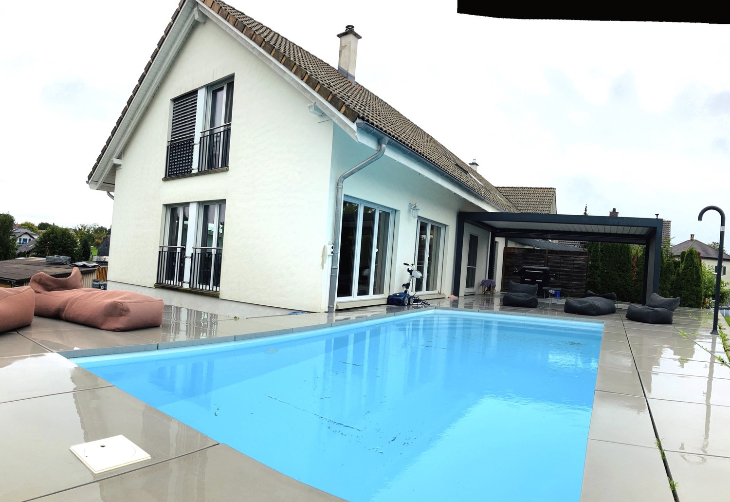 Dieses moderne, äusserst gepflegte 5.5-Zimmer-Reiheneckhaus überzeugt mit einem stilvollen Wohnambiente, grosszügigen Räumen und vielen komfortablen Extras. Ob entspannte Abende am Kamin, gemütliche Stunden auf der überdachten Terrasse oder sommerliche Erfrischung im beheizten Pool – diese Liegenschaft bietet Lebensqualität auf höchstem Niveau.