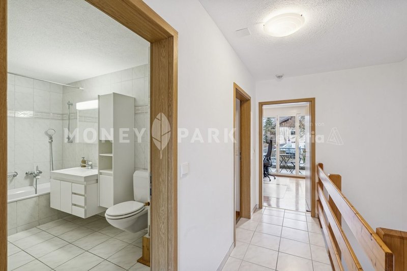Über die Treppe erreichen Sie das Obergeschoss mit drei Zimmern. Zwei davon verfügen über einen eigenen Balkon, ideal für ruhige Momente an der frischen Luft. Ein Badezimmer mit Badewanne ergänzt diese Etage. Dreifach verglaste Fenster (2014), eine Alarmanlage (2022), frisch gestrichene Bereiche (2024) sowie laufend ersetzte Geräte unterstreichen den sehr gepflegten Zustand des Hauses.