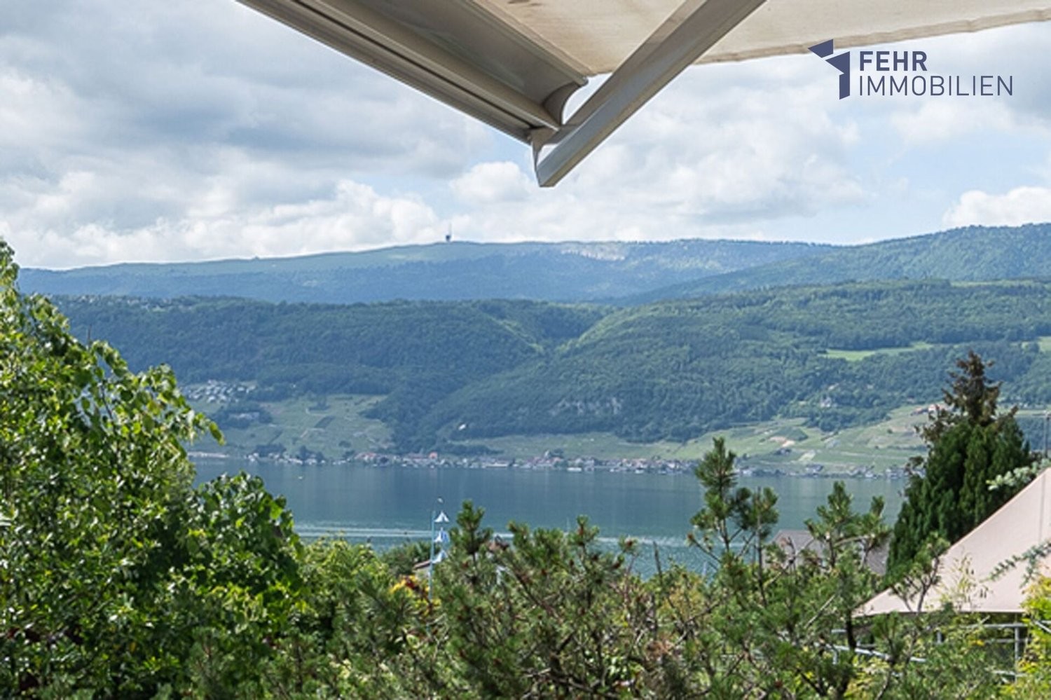 Vom Essbereich gelangen Sie auf die grosszügige, rund 75m2 grosse Sonnenterrasse mit schönem Ausblick auf den Bielersee und Jura/Chasseral. Unvergessliche Momente mit wunderbaren Sonnenuntergängen und die herrliche Aussicht werden Sie begeistern.