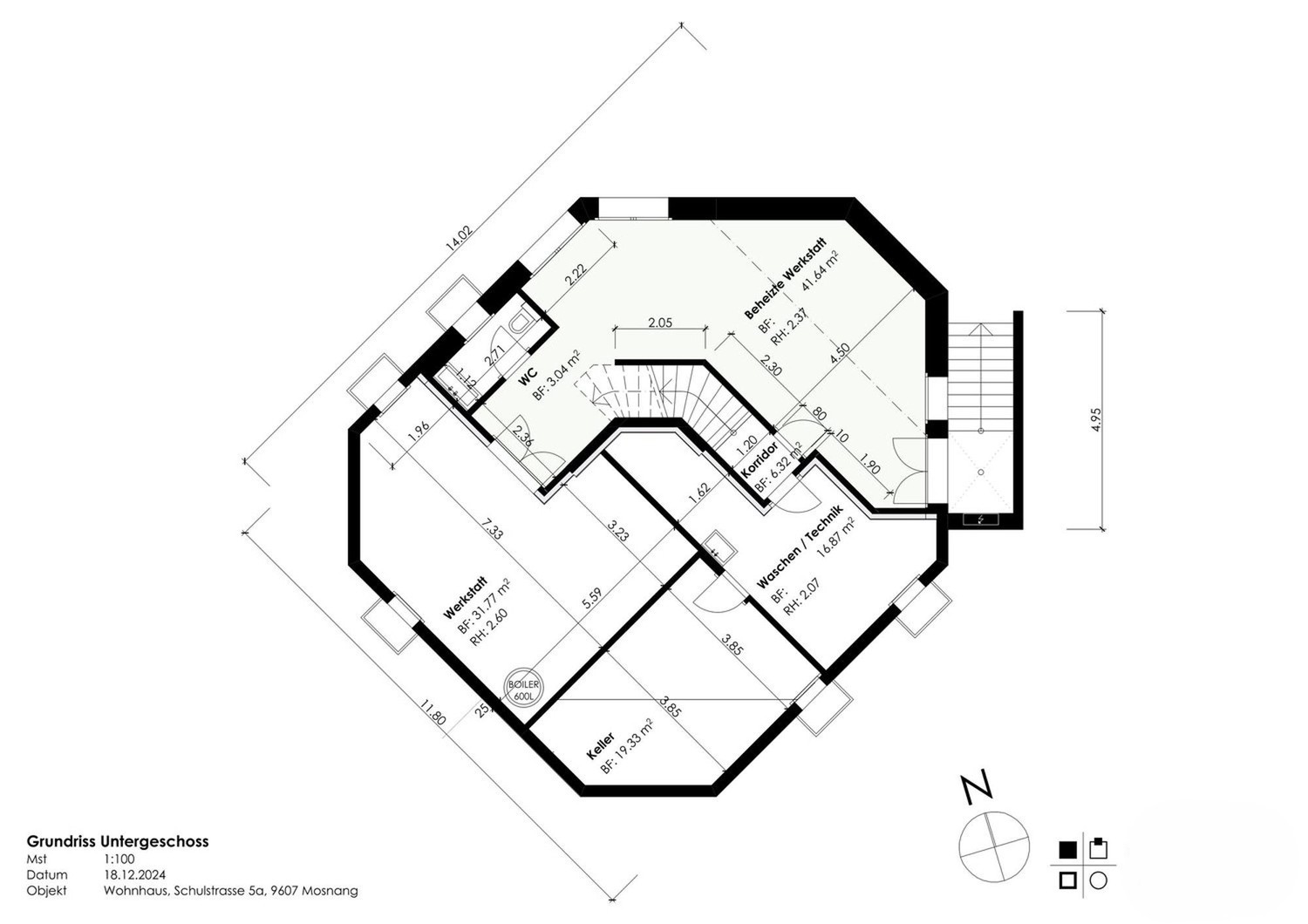 Untergeschoss: Werkstatt, Lager, Waschen/Technik