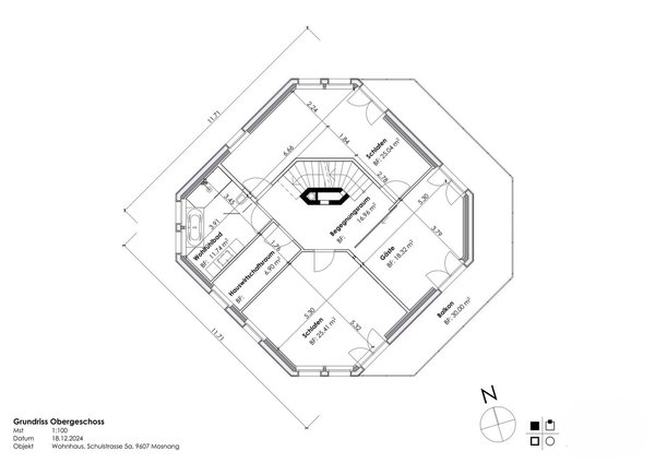 Der achteckige Grundriss schafft harmonische Energieflüsse und klare Zonen für Kreativität, Ruhe und Konzentration.