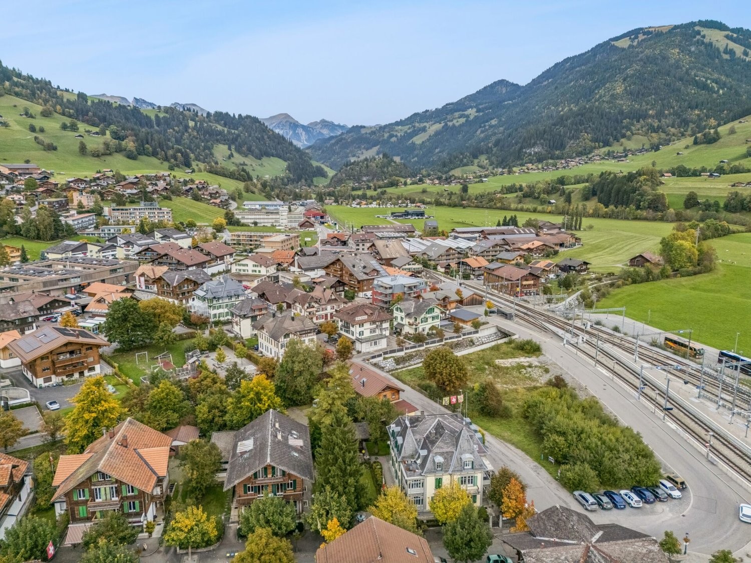 Die Anfahrt gestaltet sich komfortabel. Sowohl mit dem öffentlichen Verkehr als auch mit dem Auto ist das Objekt sehr gut erreichbar. Der Bahnhof liegt nur rund 140 Meter entfernt und ermöglicht direkte Verbindungen nach Spiez, Bern oder Montreux. Ein öffentlicher Parkplatz befindet sich direkt beim Haus und bietet ausreichend Platz für die tägliche Nutzung.