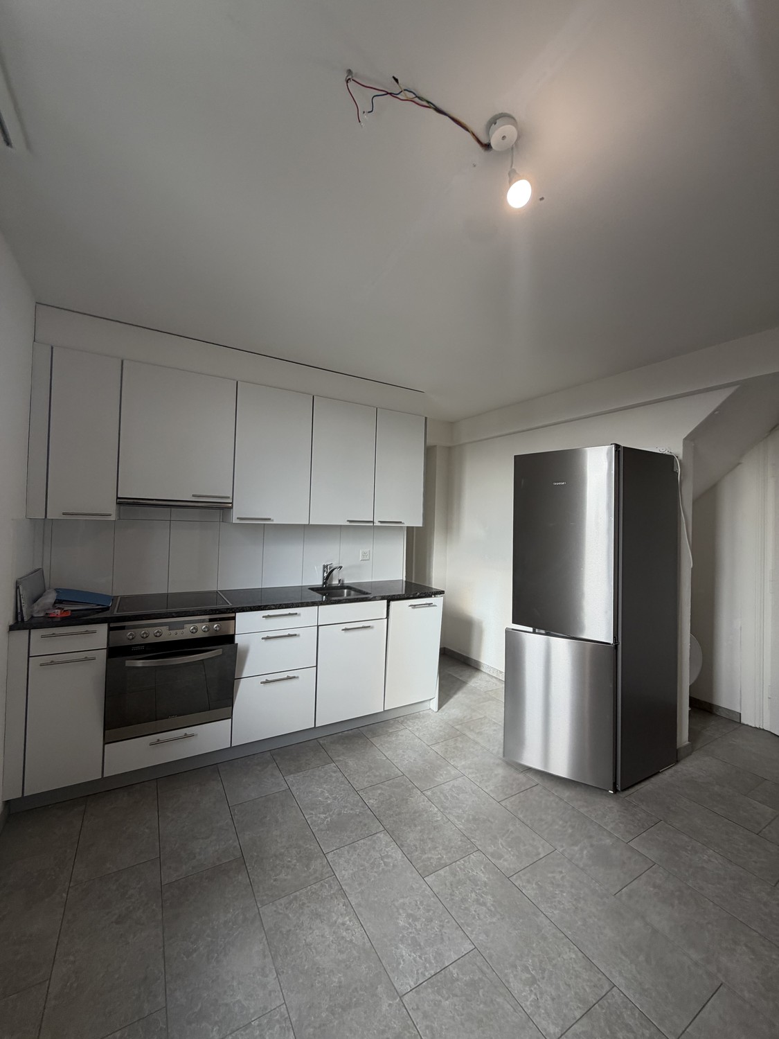Grosse Essküche mit integrierter Waschmaschine – ideal für den Alltag