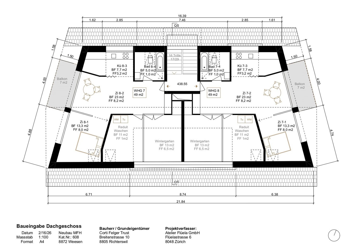 Die vollständigen Projektunterlagen (Pläne, Schnitte, Ansichten, Berechnungen) sind vorhanden und werden bei Interesse gerne zur Verfügung gestellt.