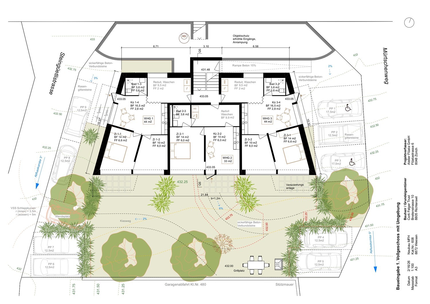 Die ruhige Lage sowie die gute Erschliessung machen den Standort sowohl für zukünftige Mieter als auch für Investoren interessant.