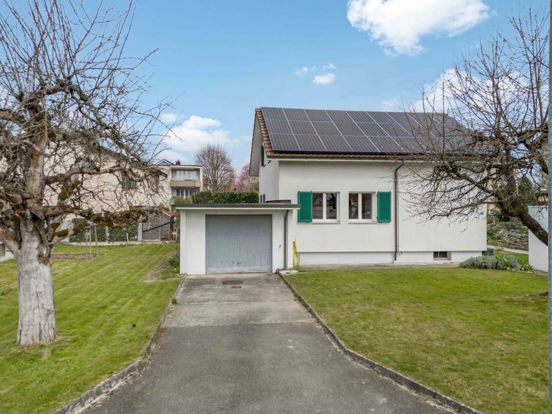 Die gepflegte und freistehende Liegenschaft ist ganztags gut besonnt und verwöhnt mit einem schönen Garten. Das Wohnhaus mit sanierter Gebäudehülle und Photovoltaikanlage spricht nicht nur Familien an, sondern begeistert auch Paare, die Wert auf ein eigenes Zuhause legen. **
