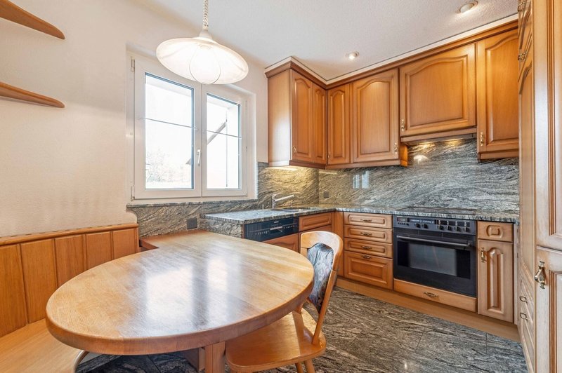 Die Liegenschaft, mit einer Nettowohnfläche von ca. 104 m², betreten Sie durch das geräumige Entrée mit platzsparenden Einbauschränken. Angrenzend befindet sich der Nassraum mit Dusche und Closomat. Die geschlossene Küche bietet einen gemütlichen Essbereich, der ideal ist, um das Frühstück oder den ersten Kaffee in entspannter Atmosphäre zu geniessen. Anschliessend befindet sich der helle Wohnbereich mit angrenzendem Esszimmer.