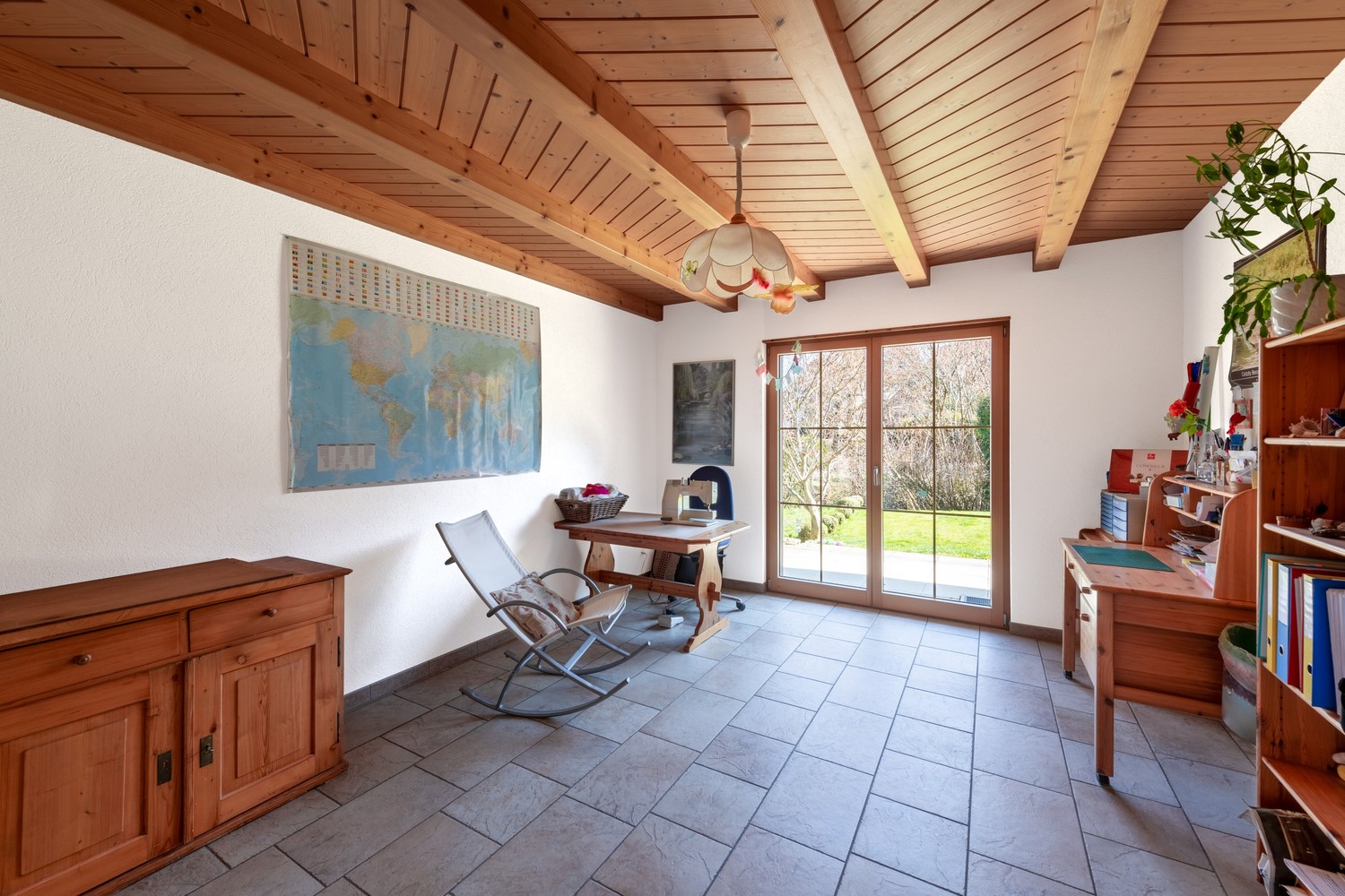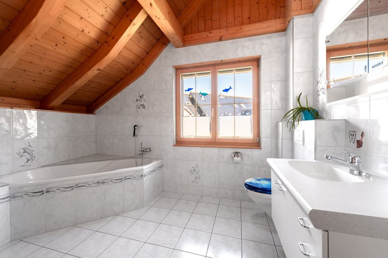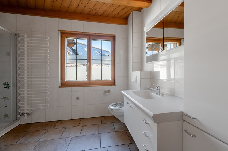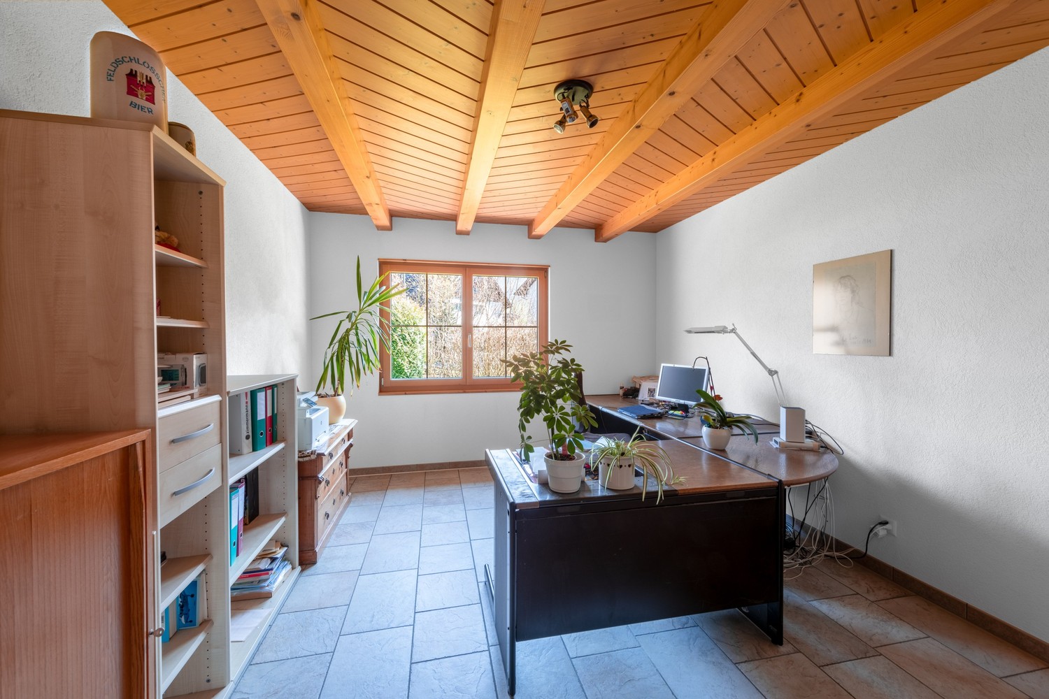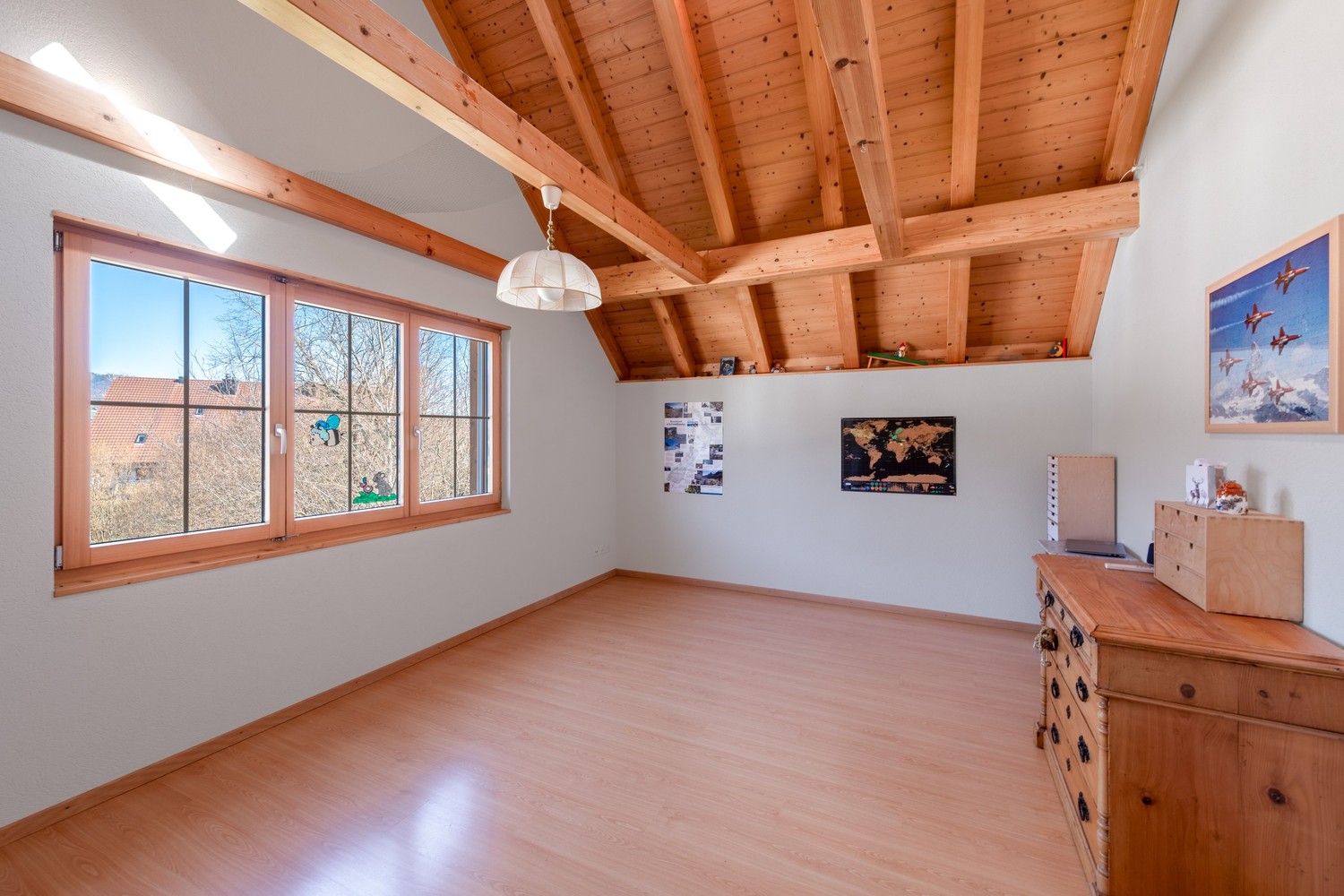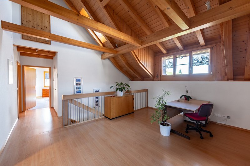 Komfortable Ausstattung: Elektrische Storen an allen Fenstern sowie 11 elektrisch bedienbare Dachfenster mit Aussenrolladen bieten Ihnen eine perfekte Kontrolle über Licht und Belüftung im gesamten Haus. Diese Ausstattung sorgt für zusätzlichen Komfort und trägt zur Verbesserung des Raumklimas bei.