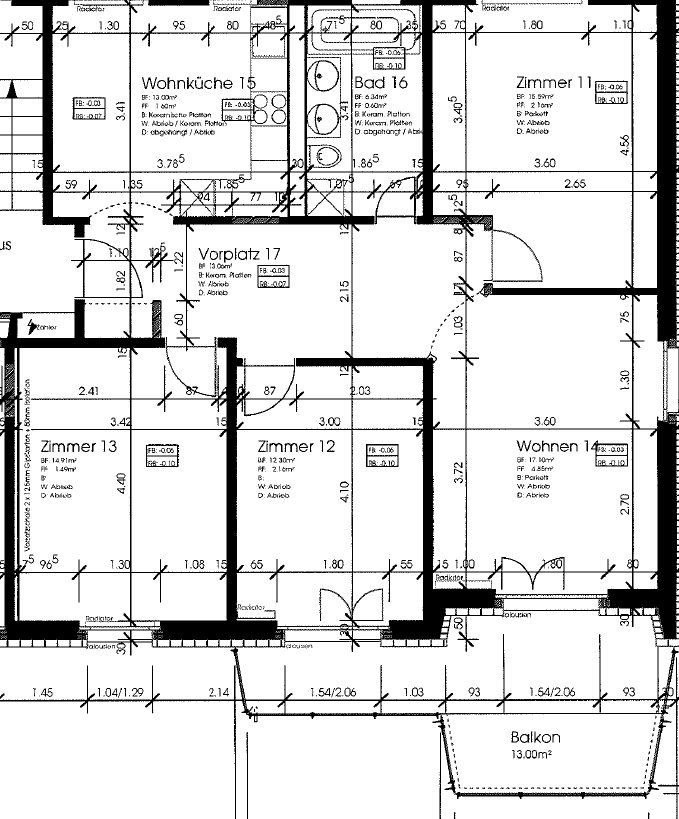 Plattenboden in der Küche und Badezimmer