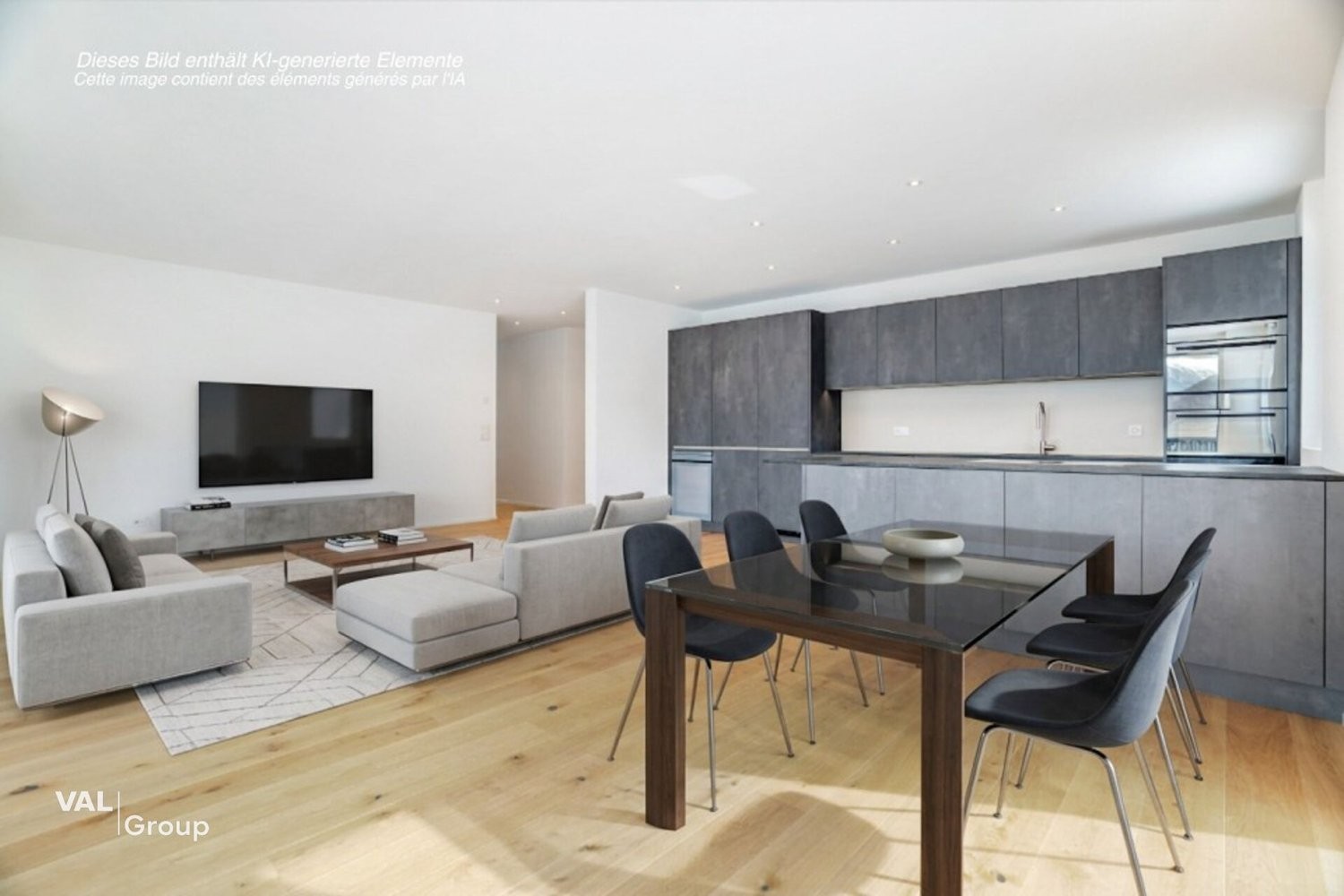 Die Wohnung überzeugt durch einen durchdachten Grundriss mit drei Schlafzimmern, zwei modernen Badezimmern sowie einem grosszügigen, offen gestalteten Wohn-, Ess- und Küchenbereich. Die grossen Fensterfronten sorgen für viel Tageslicht und eine helle, freundliche Wohnatmosphäre.