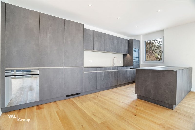 Das Herzstück bildet der stilvolle Wohnbereich mit moderner Küche inklusive Kochinsel und hochwertigen Geräten. Von hier aus gelangen Sie direkt auf die grosszügige Attikaterrasse, welche viel Platz für einen Esstisch, eine Lounge oder einen Grill bietet. Geniessen Sie hier die schöne Aussicht auf Visp und die umliegende Bergwelt.