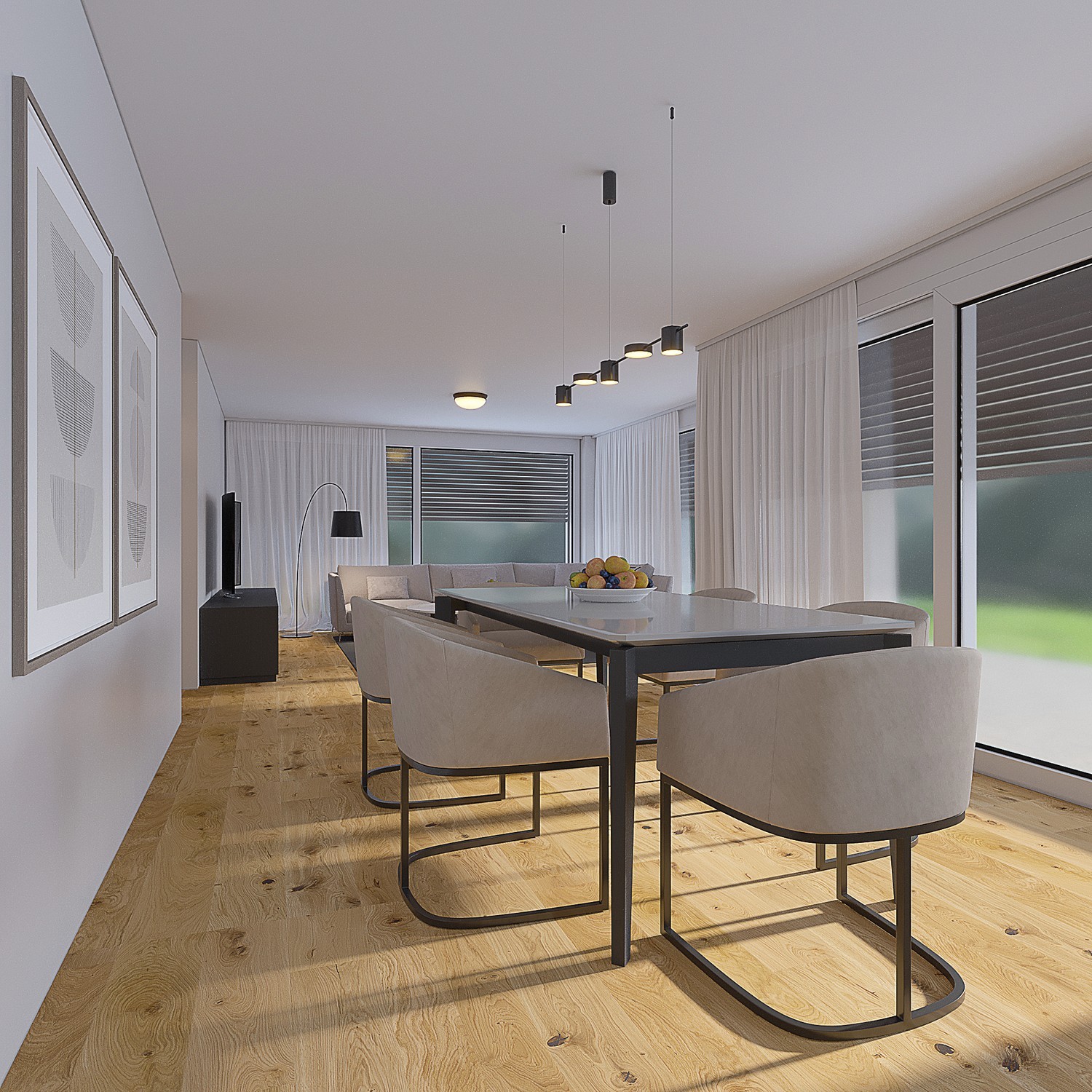 Lichtdurchfluteter Wohn-/Essbereich mit direktem Zugang zur Terrasse