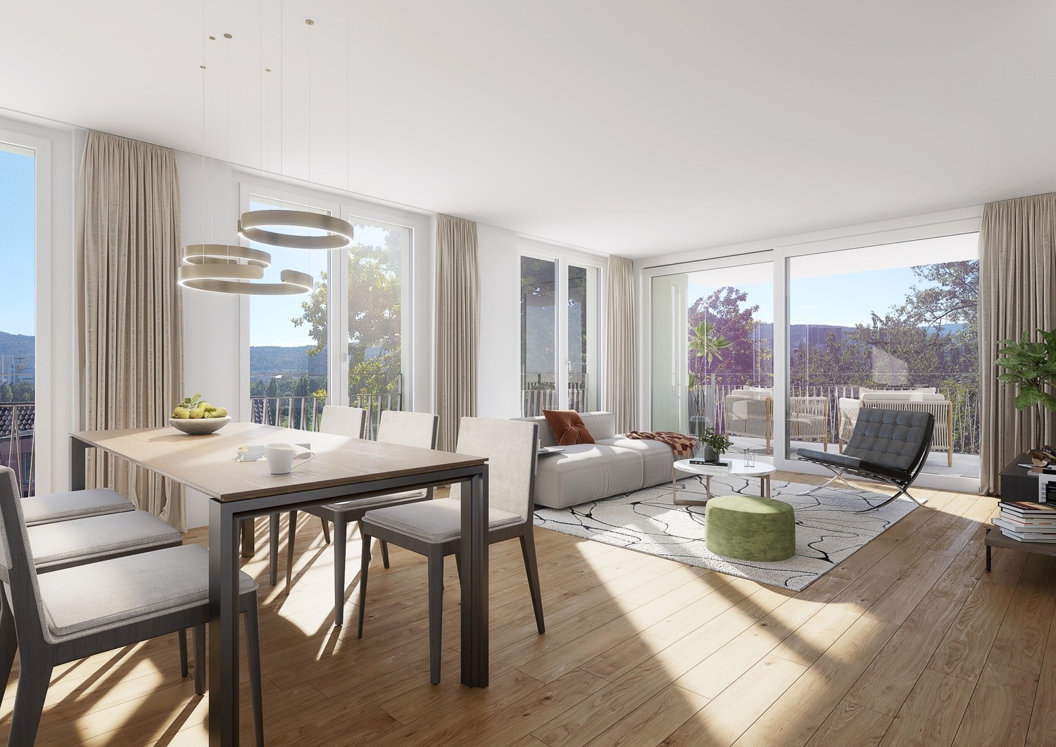 Grosszügige, lichtdurchflutete Grundrisse mit grossen Fensterflächen und Aussicht ins Grüne sowie zur Limmat
