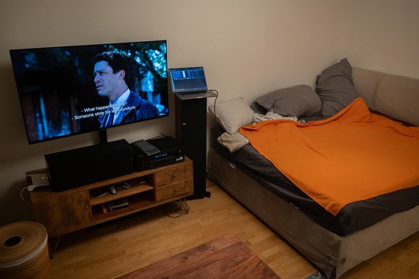 There's an OLED TV, a nice sound system, reasonable sized kitchen etc.