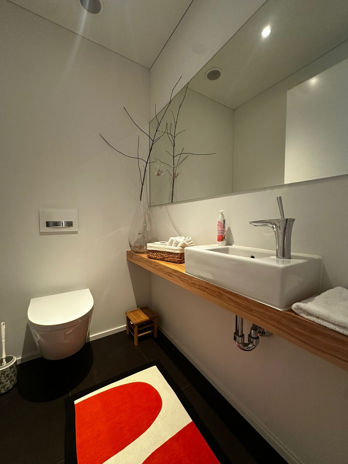 Für maximalen Wohnkomfort sorgt die moderne Haustechnik: Eine Bodenheizung mit Kühlfunktion im Sommer, kontrollierte Wohnungslüftung sowie eine Smarthome-Steuerung via Touchpanel, mit der Licht, Storen, Temperatur und weitere Funktionen bequem geregelt werden können.