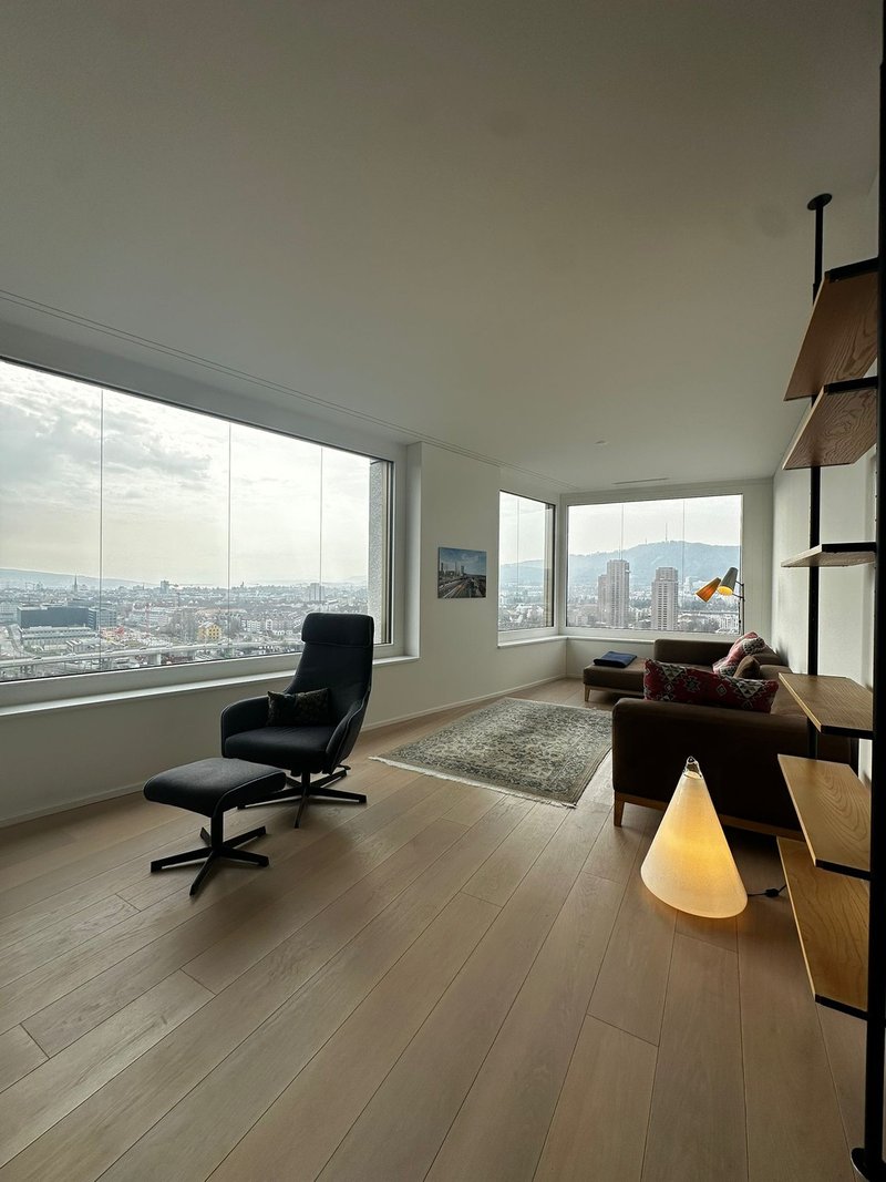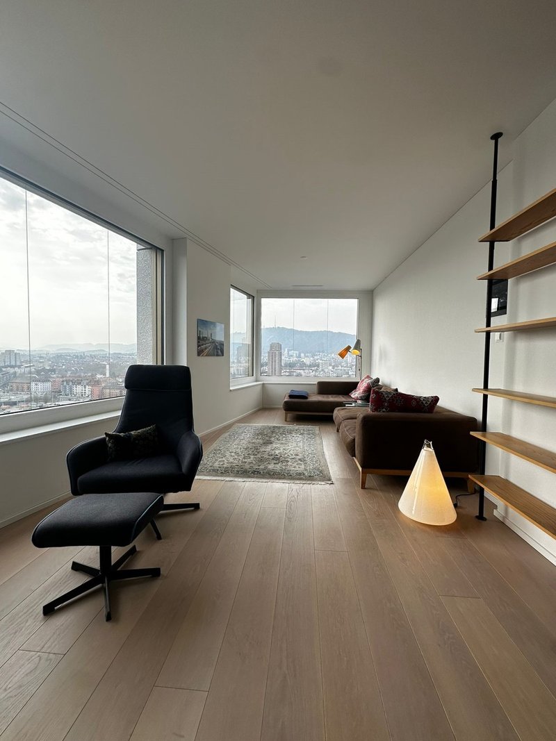 Mit 23 Etagen und einer Höhe von 77 Metern zählt das Zölly zu den markantesten Wohnhochhäusern der Schweiz. Im 19. Obergeschoss bieten wir Ihnen eine stilvoll möblierte 2.5-Zimmer-Wohnung mit beeindruckender Fernsicht.