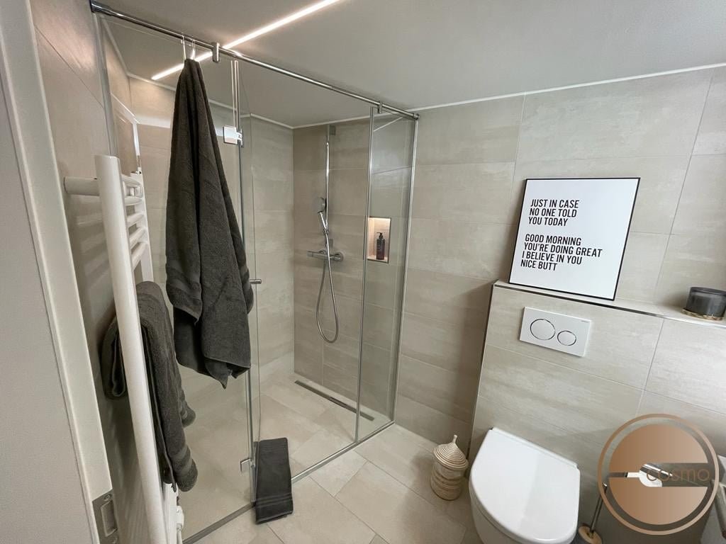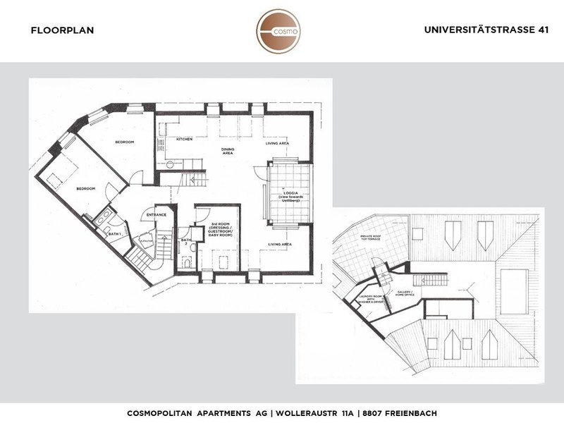 Via the gallery level, which offers a separate laundry room with washing machine and tumble dryer, you reach one of the absolute highlights of this unit: your private 360° roof terrace. This exclusive terrace has a Balinese lounge bed, a dining table and an outdoor shower that ensures quick refreshment while your gaze sweeps over the sparkling Lake Zurich and the surrounding mountains. There is hardly a better way to live in Zurich!