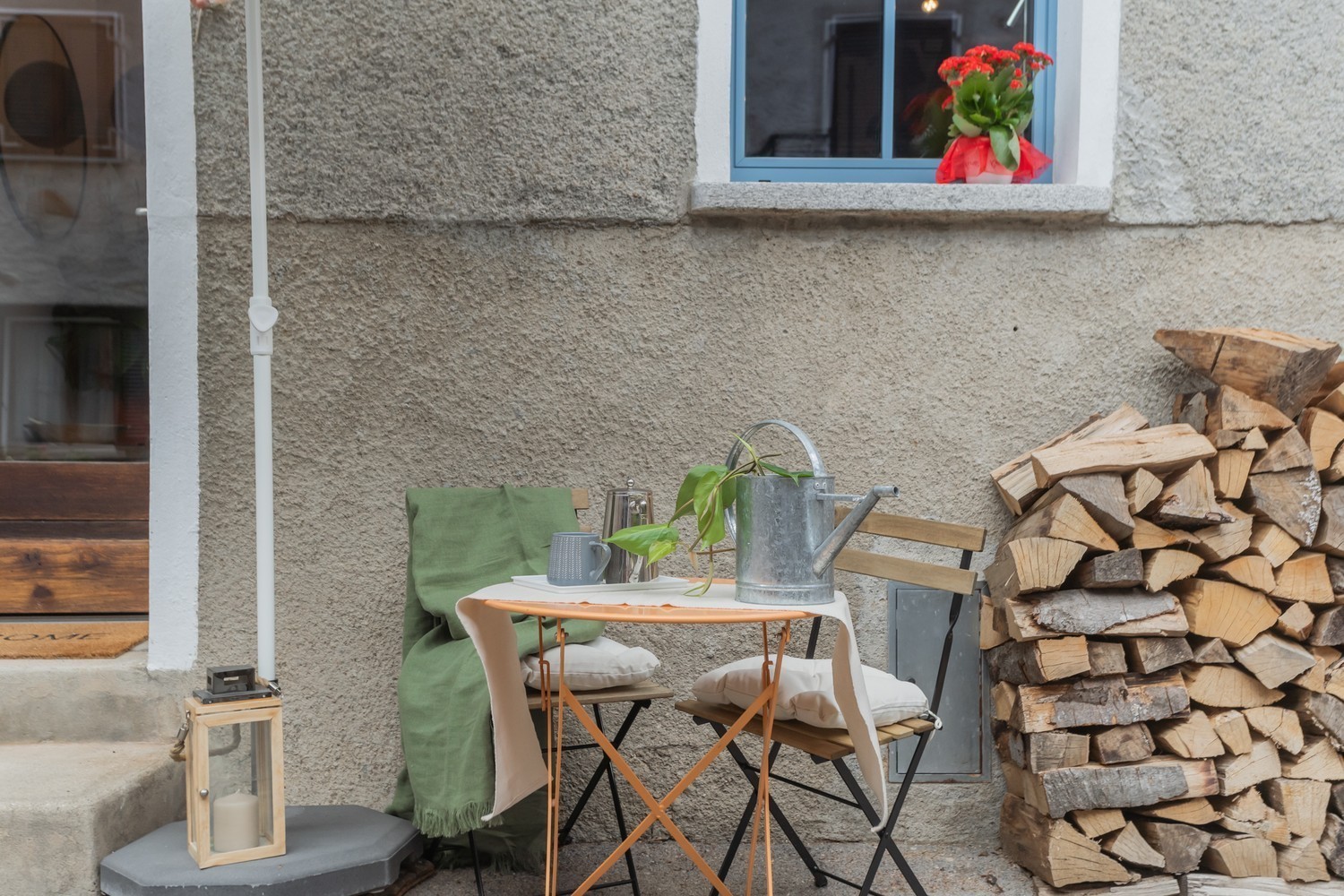 Außenbereich mit Tisch und Stühlen zum Entspannen