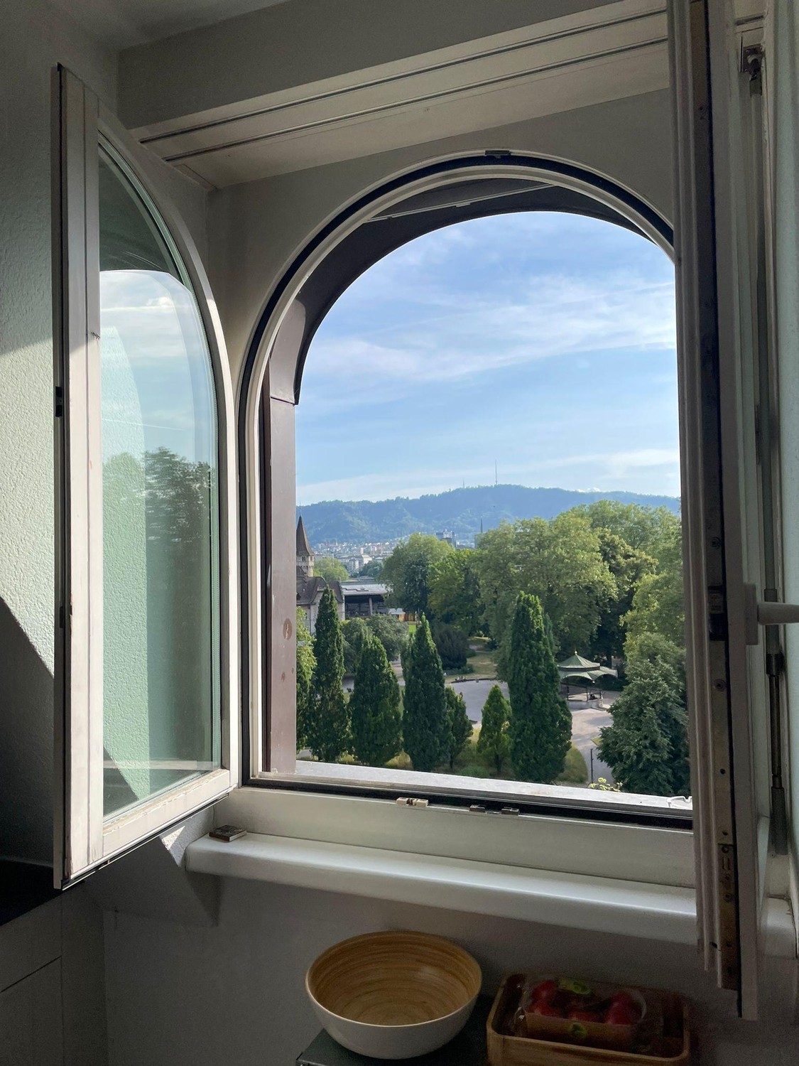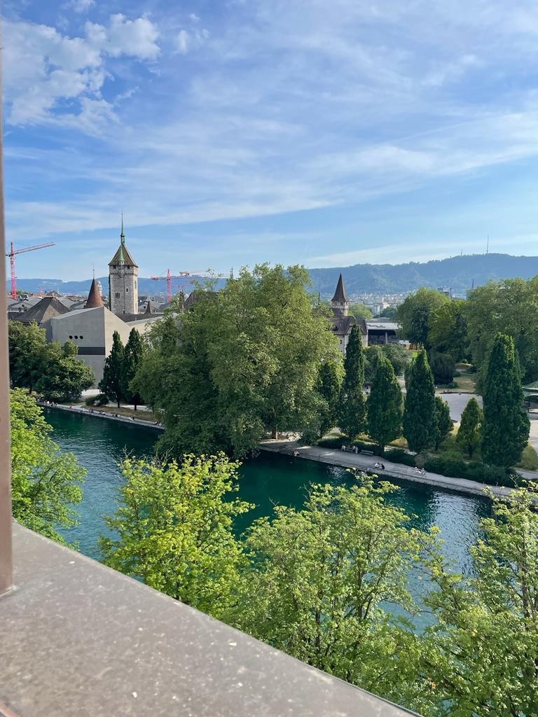 Stunning Views: Located on the 4th floor (with elevator) offering unobstructed park and river views, directly overlooking the Limmat.